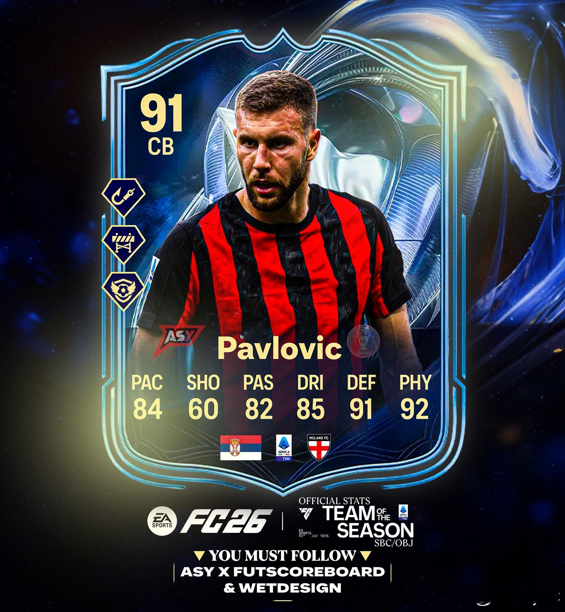 帕夫洛维奇 & 萨勒马科尔斯的正式数据。将通过SBC或目标任务推出FC26