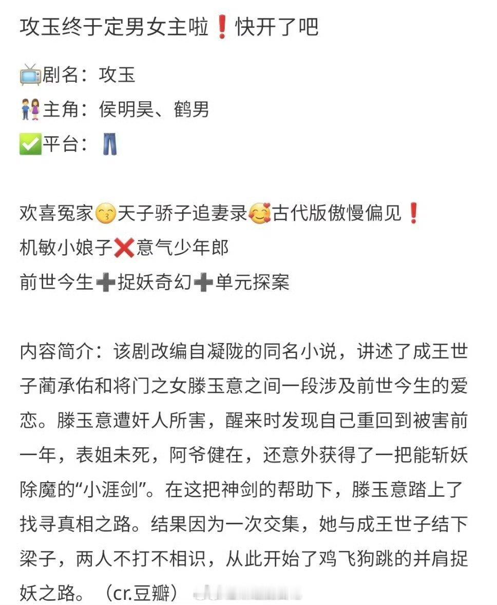 侯明昊怎么一直在扶贫🤦🏻♀️侯明昊、鹤男的《功玉》五月中开👖年后过会的独苗苗,目前危险的是女主的状态…当年我以为《逐玉》就是《攻玉》来着田曦薇真的很适配女主,又回温了一遍小说越看越觉得田曦薇好合适,结果不是同一部。鹤男不是不好,但我心里已经有了最合适的人选