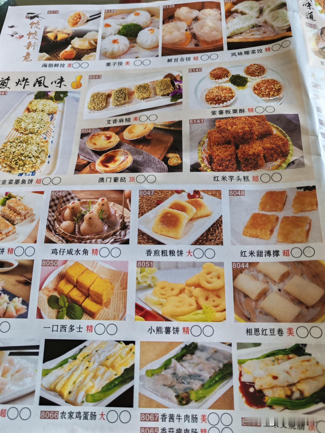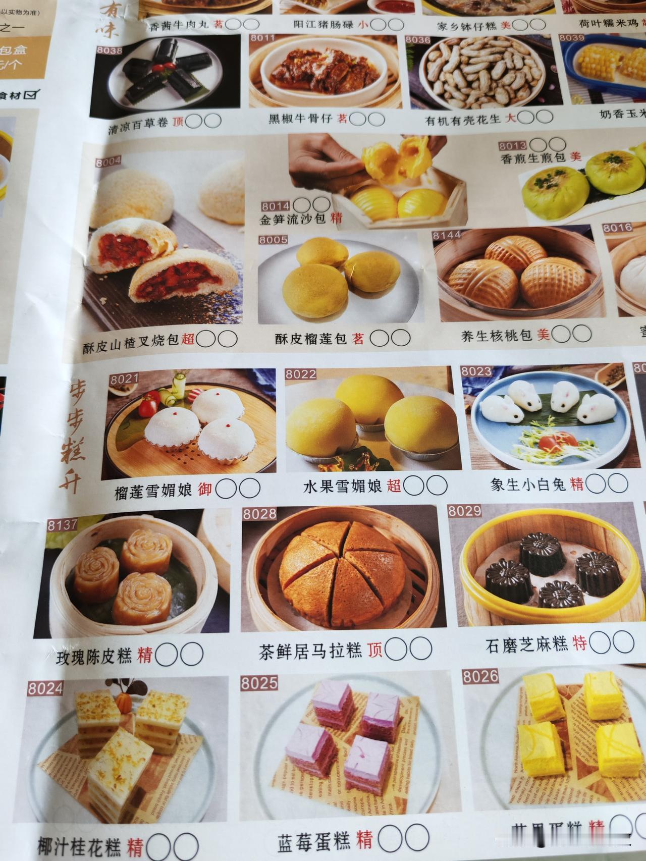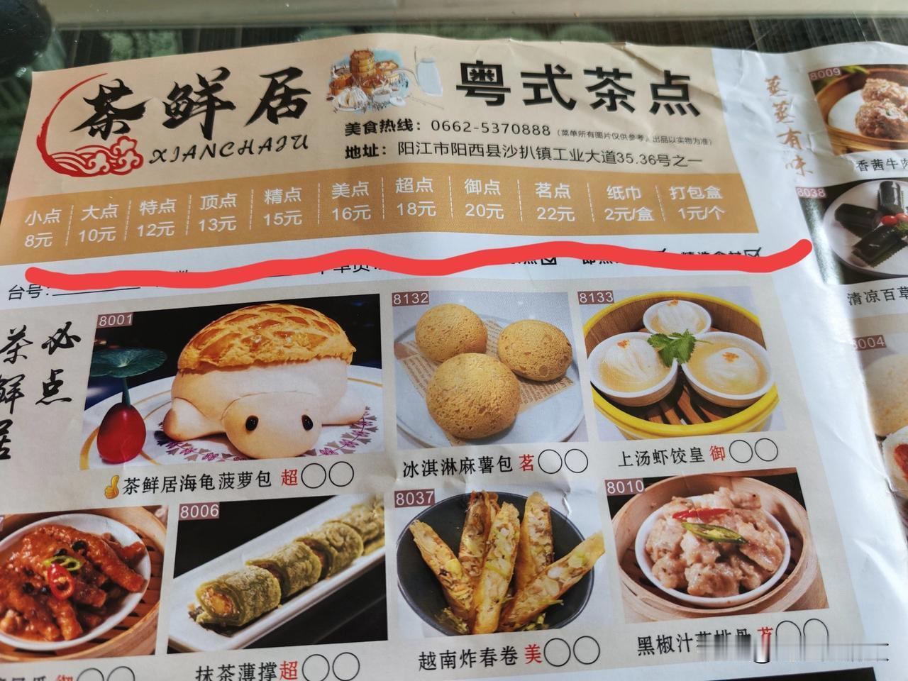 直到昨天,在月亮湾的集市上,有人塞给我一张早茶点的宣传单。我拿回家仔细研究后,才稍微明白了其中的含义。原来,不同名称的茶点价格不同。这些字样,大概代表着茶点的等级和价格吧。