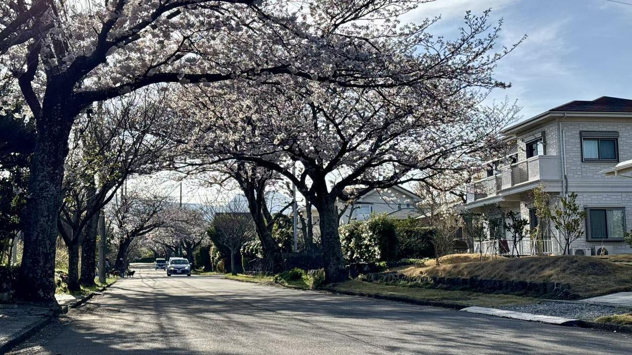 第9-10张照片,是伊豆春日最浪漫的收尾。满街的樱花树撑起了一条纯白的花廊,阳光透过花瓣洒下斑驳的光影,风一吹,就有樱花簌簌落下,铺成一条柔软的花路。这是伊豆的春日限定,也是《伊豆的舞女》里,舞女们走过的同款春景。川端康成笔下的青春与遗憾,仿佛就藏在这满树繁花里,让每一个踏过花路的人,都能读懂伊豆的文艺与温柔。