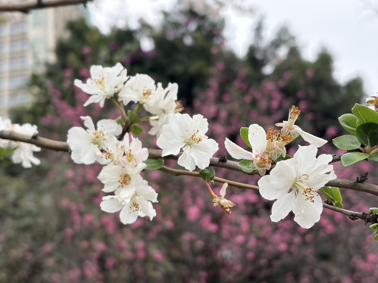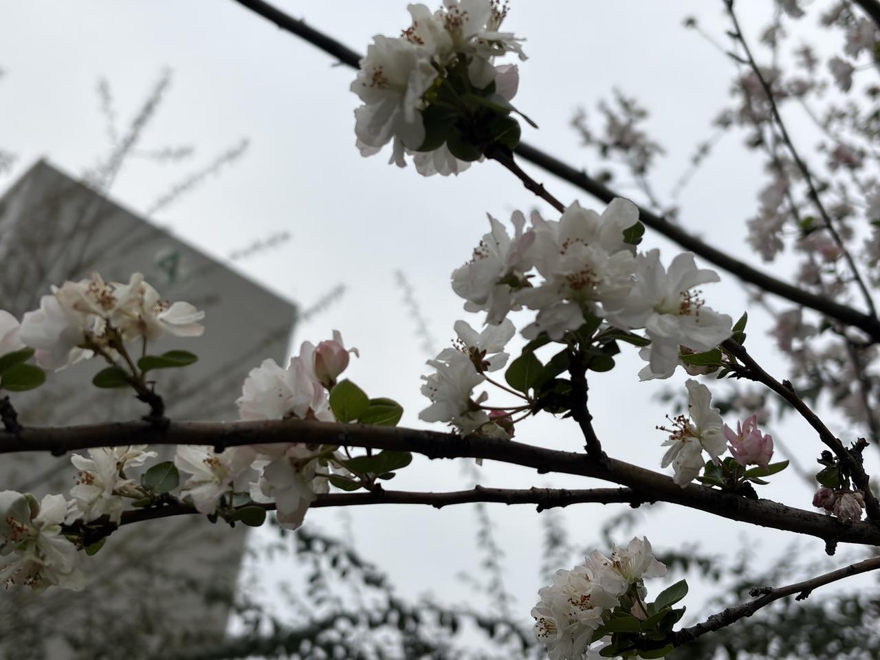 候诊的人潮拥挤,心里还装着昨日重回老厂的怅然,直到抬头撞见满树粉白。