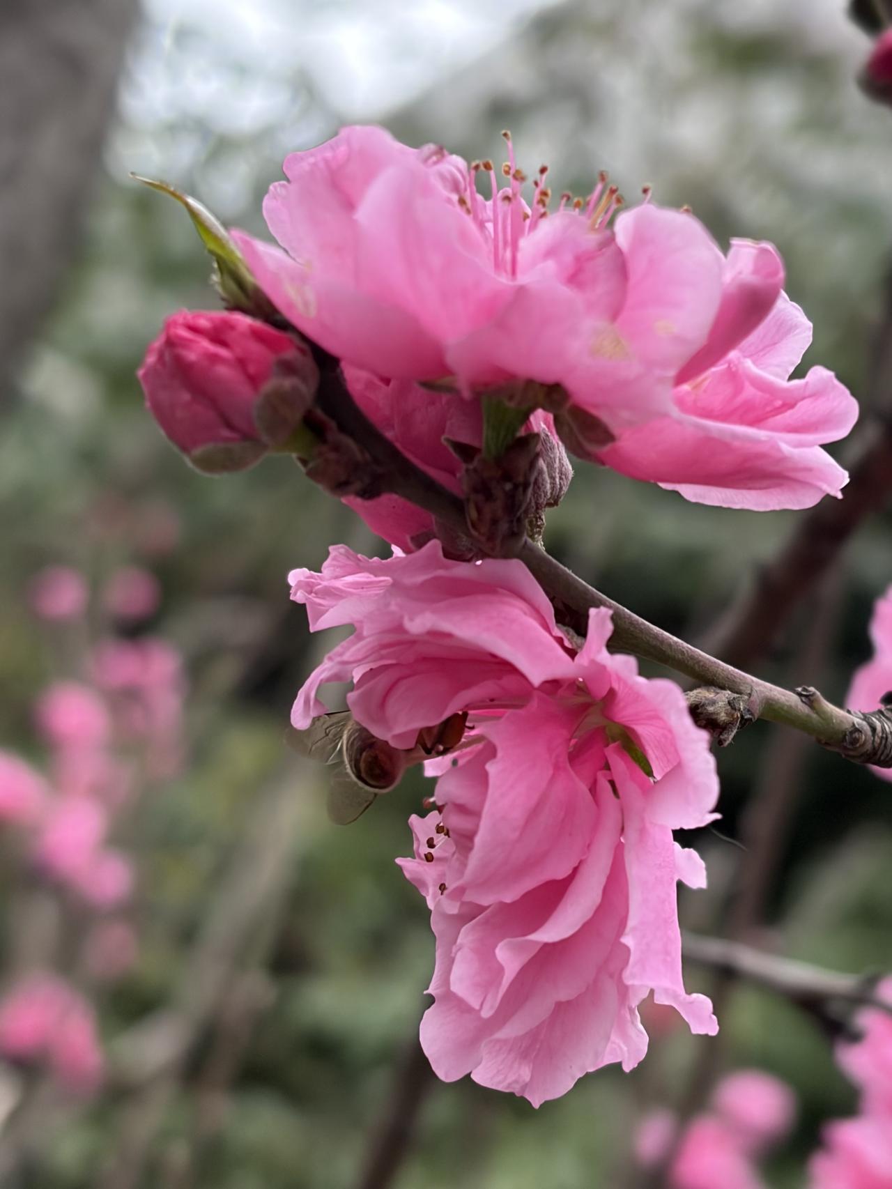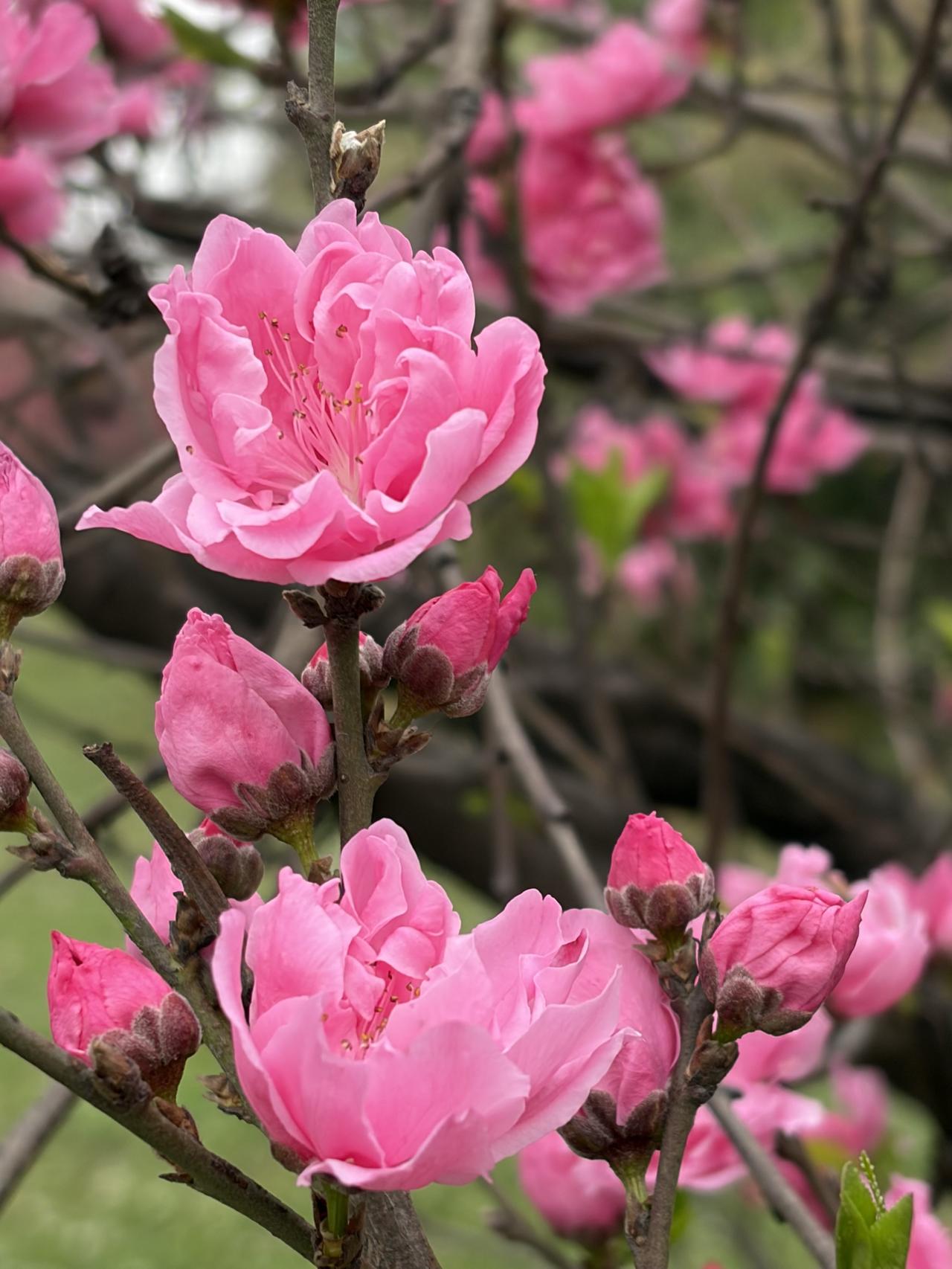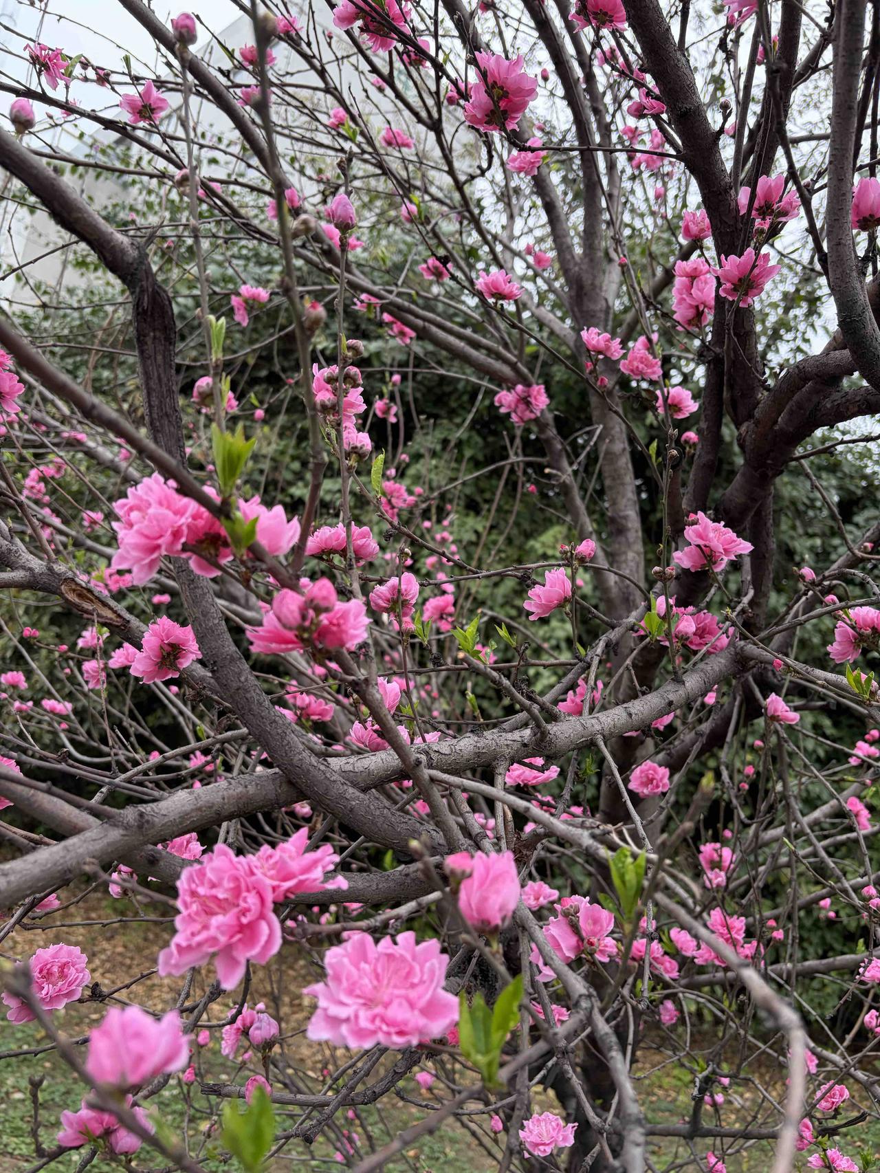 碧桃开得热烈,海棠缀着清浅,连阴雨天都挡不住它们的生机。