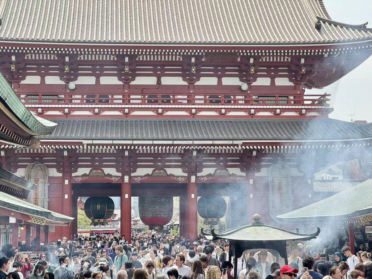 女儿说浅草寺是这次行程人最多的地方,照片里的仲见世通人声鼎沸,红墙黑瓦的寺庙前挤满了游客,袅袅青烟绕着五重塔的金顶,连廊下的红灯笼都透着春意。我仿佛能听见她穿梭在人群里的脚步声,能看见她在寺前认真祈福的模样,那座藏着百年烟火的寺庙,成了她东京之行最具烟火气的注脚。