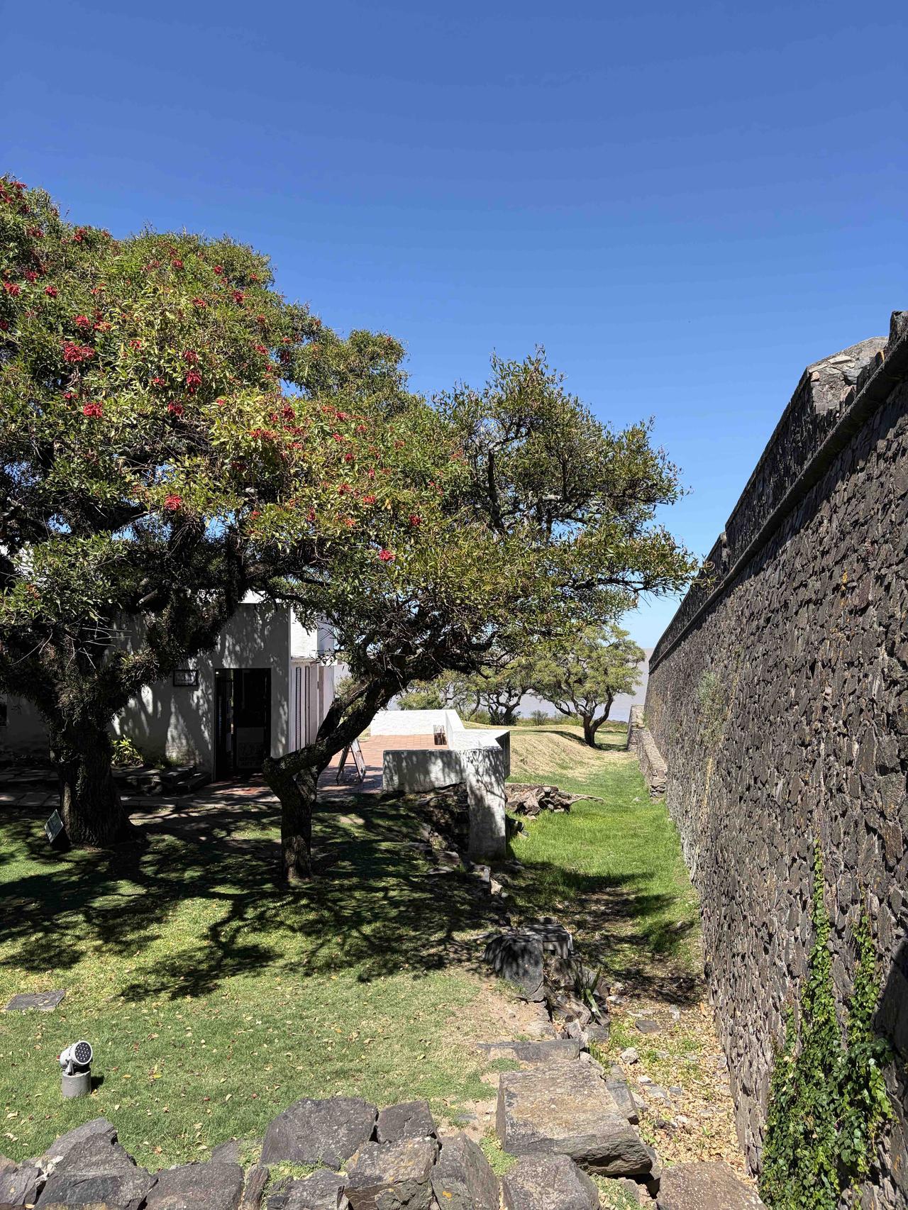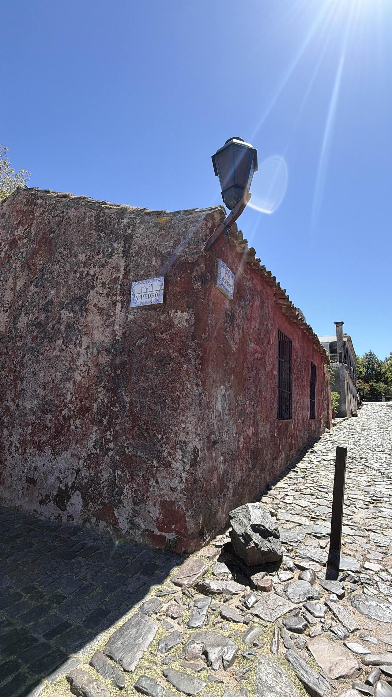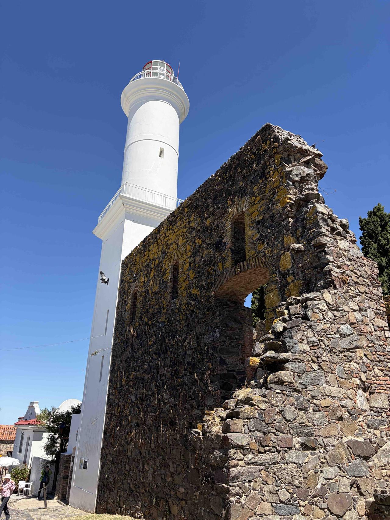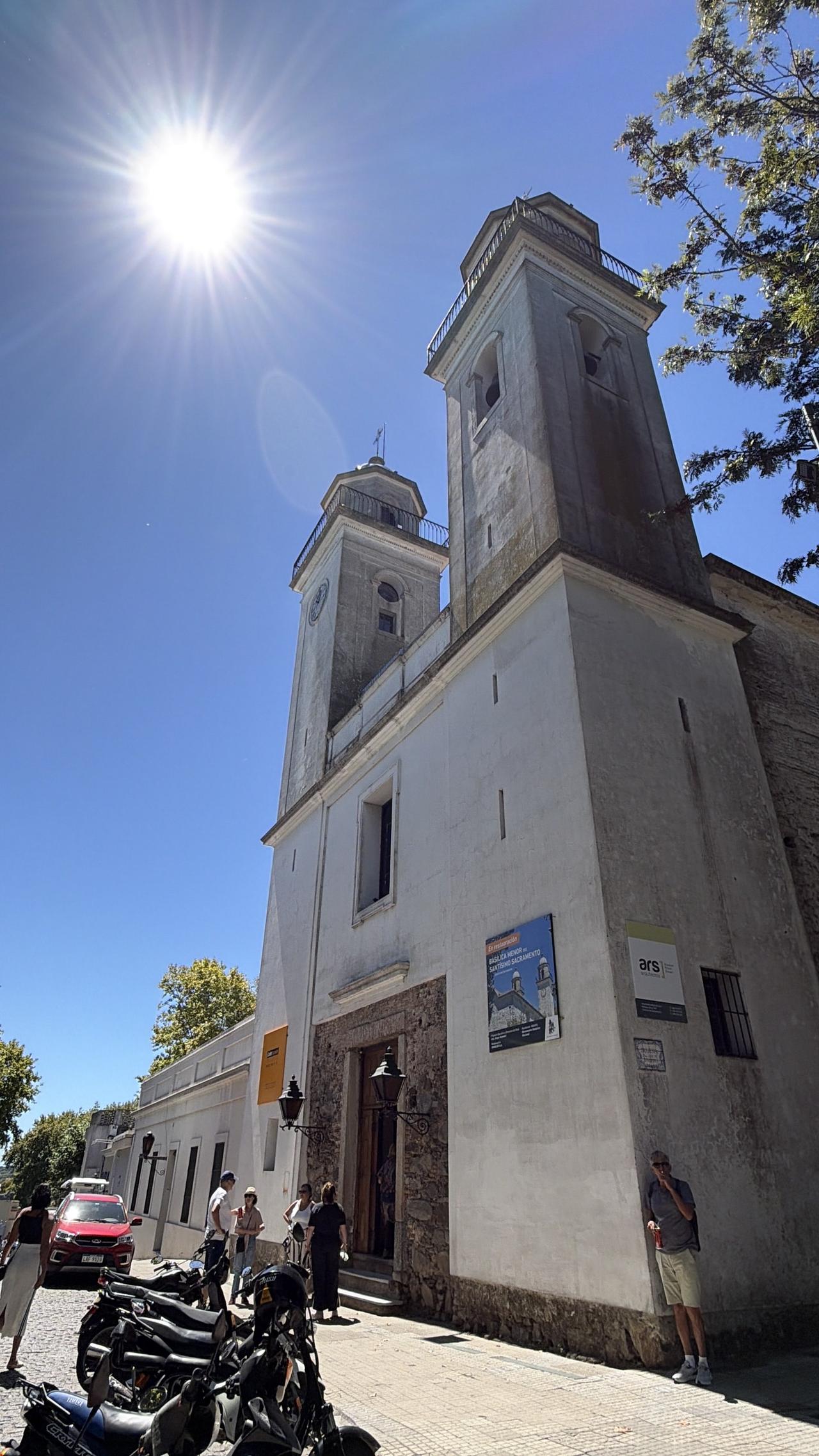 踩着三百年的鹅卵石路,穿过葡萄牙城门,路过乌拉圭最古老的教堂,在灯塔下看拉普拉塔河的风。三角梅开得正好,蓝白条纹的国旗在街角飘扬,连时间都在这里慢了半拍。