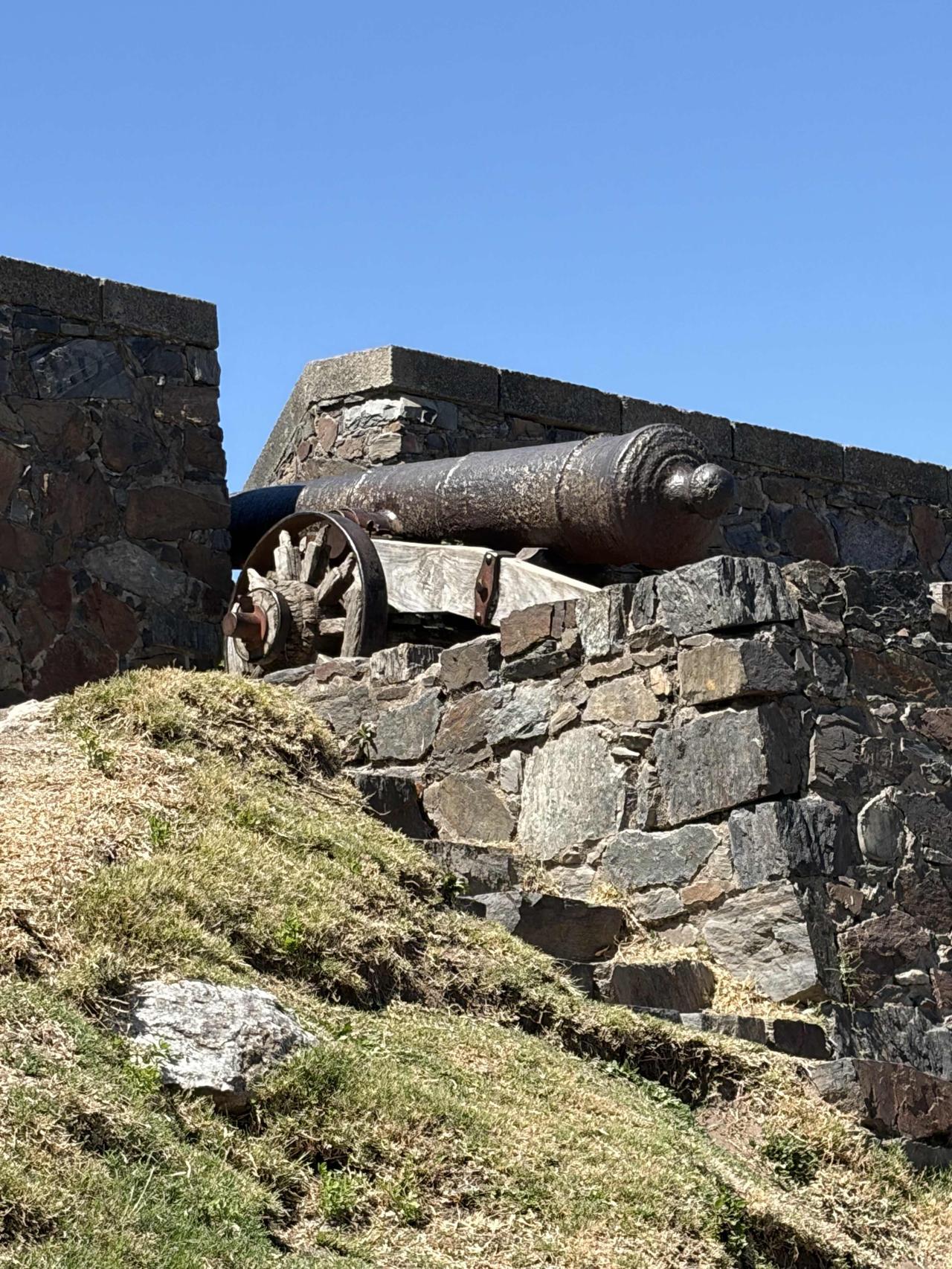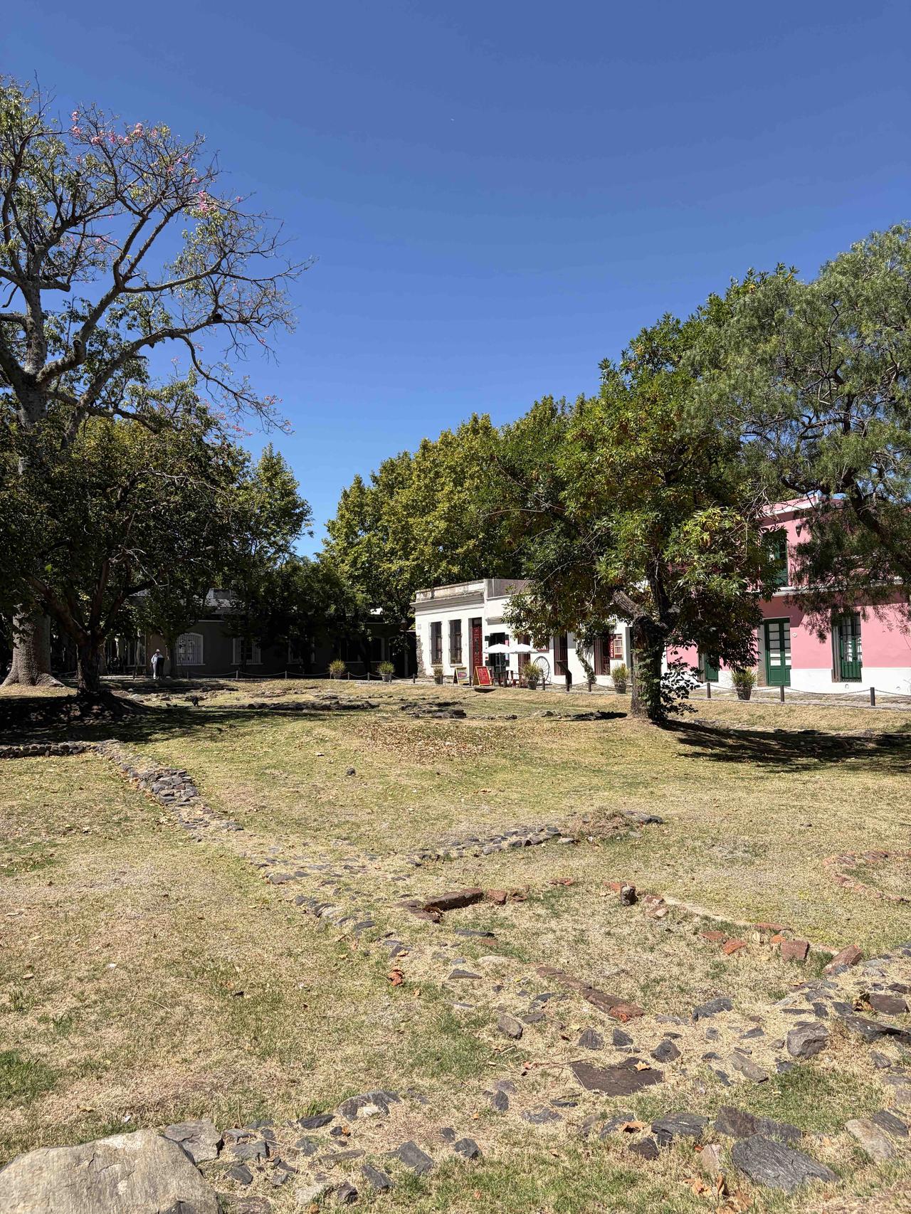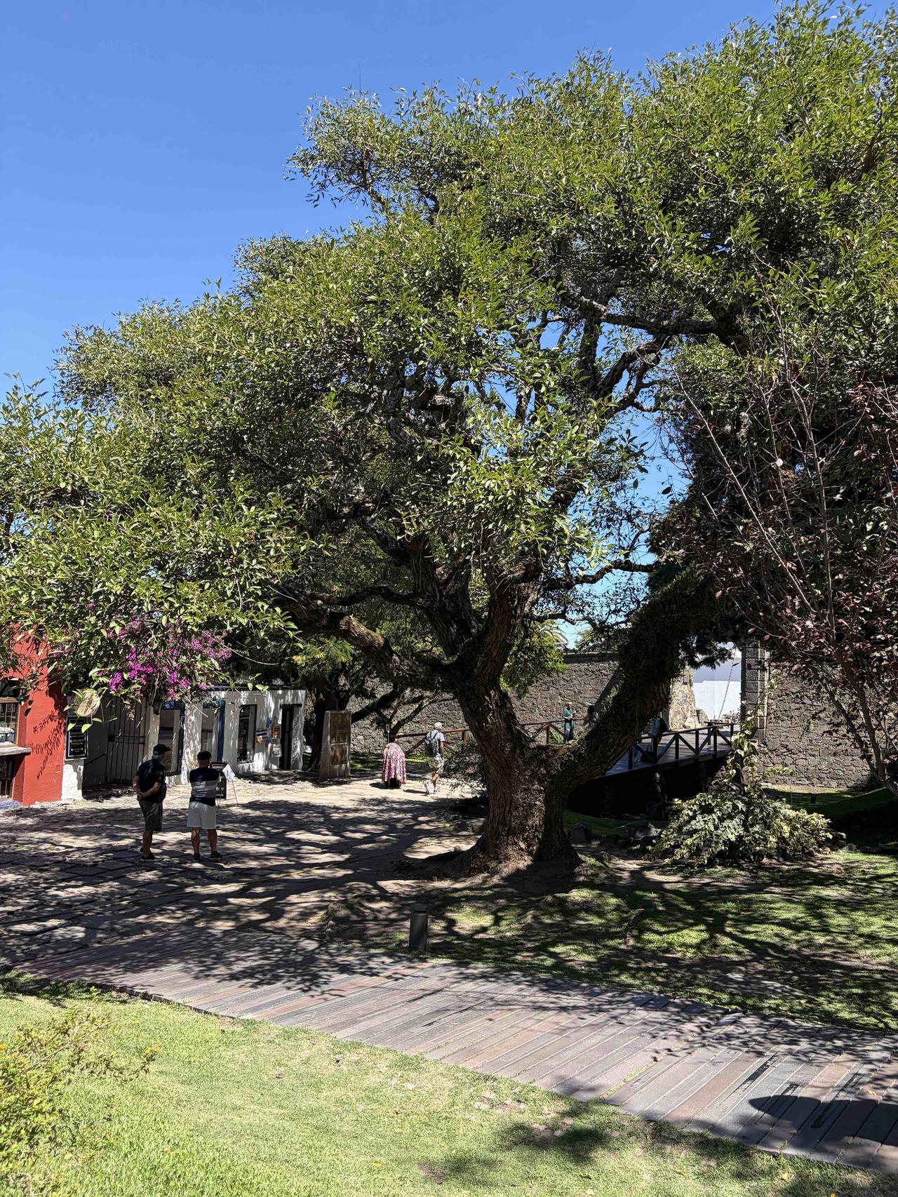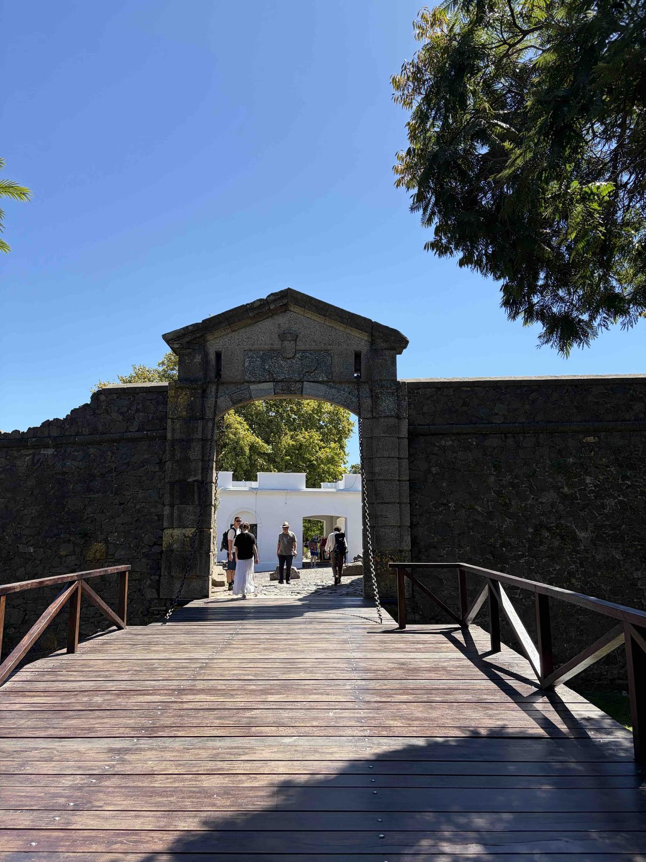 踩着三百年的鹅卵石路,穿过葡萄牙城门,路过乌拉圭最古老的教堂,在灯塔下看拉普拉塔河的风。三角梅开得正好,蓝白条纹的国旗在街角飘扬,连时间都在这里慢了半拍。