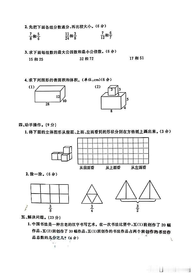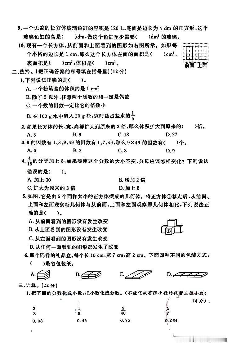 五年级下册数学期中阶段测评卷,挑战你的数学智慧!