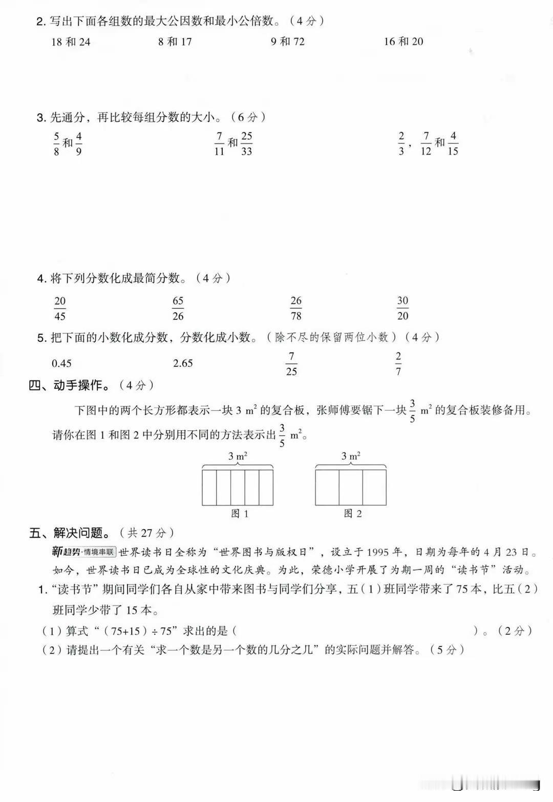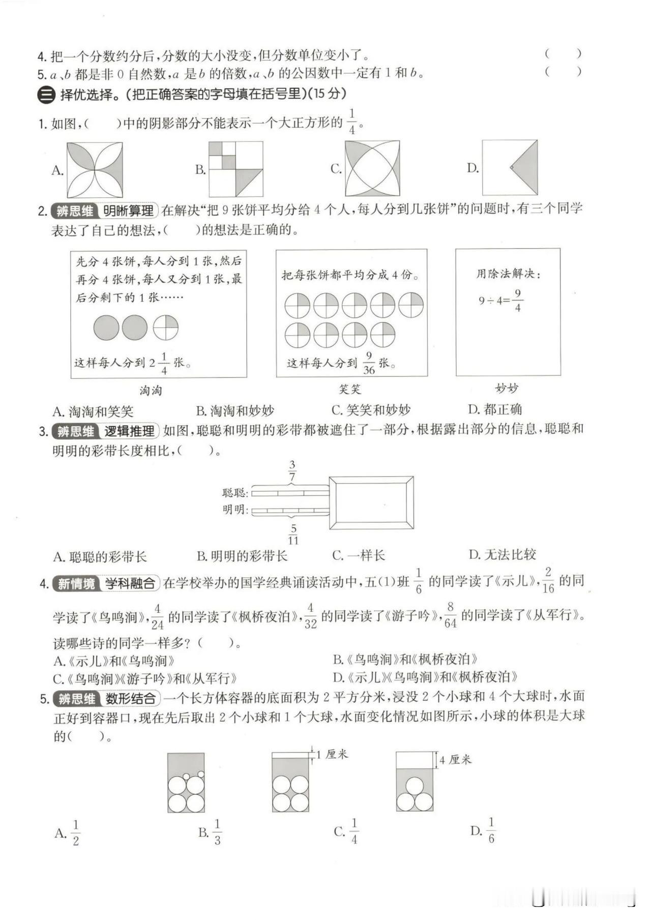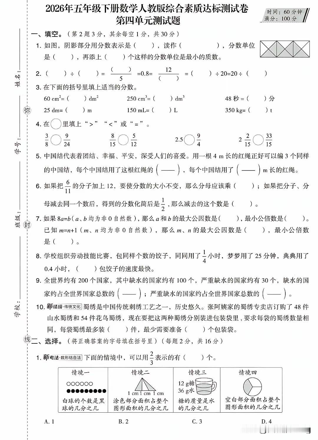 五年级下册数学第四单元拔尖测试卷(2套),挑战满分!