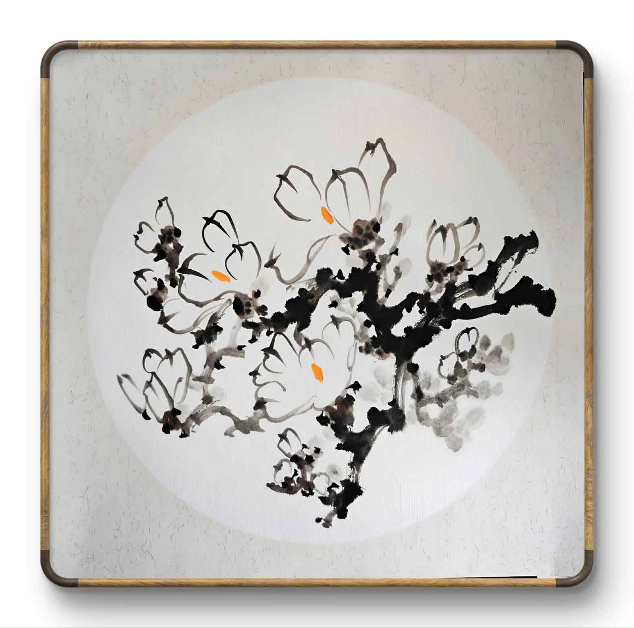 国画 玉兰花 勾线 花鸟画