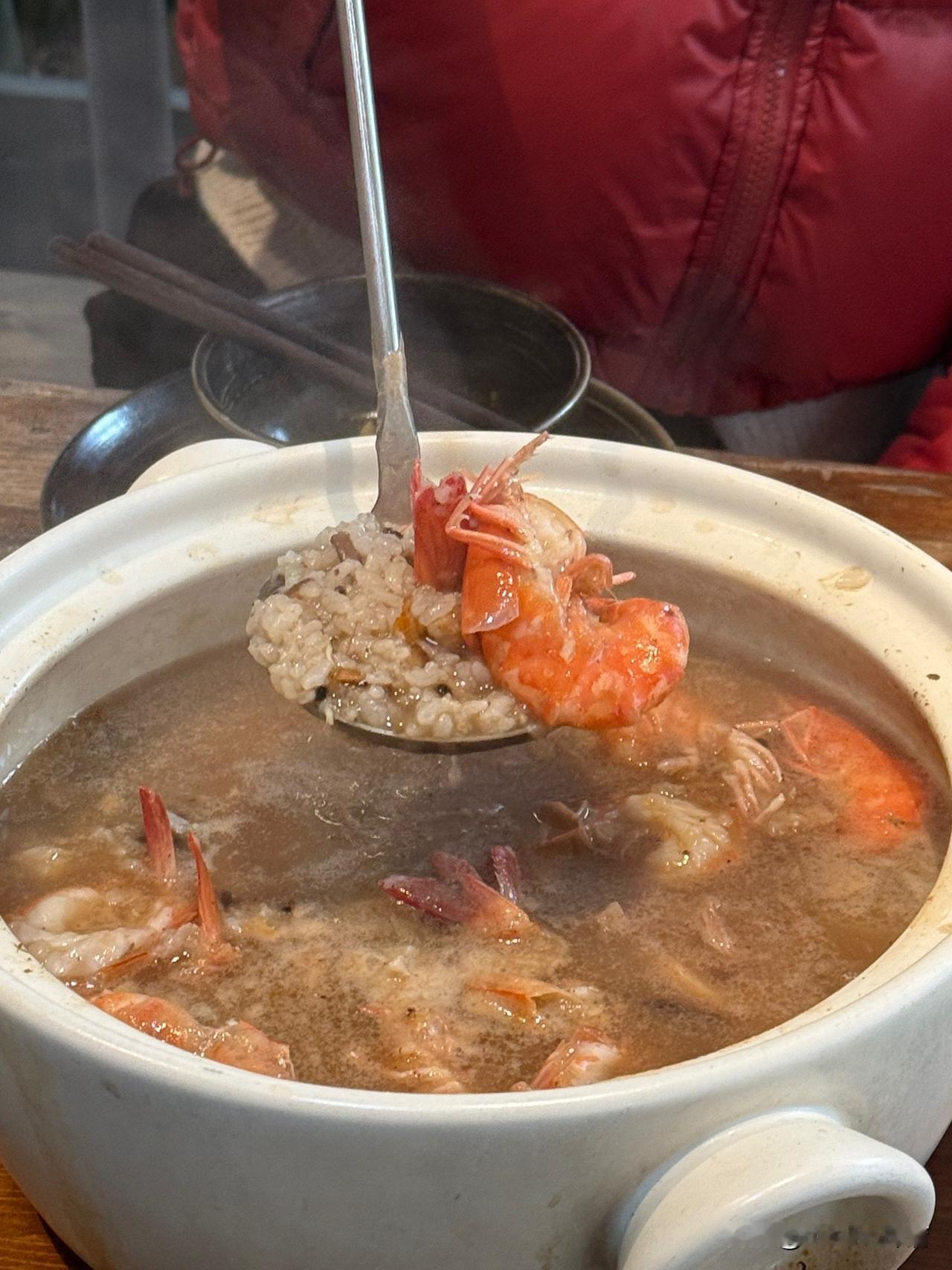 九节虾,干贝,海鲜粥底真的很鲜甜