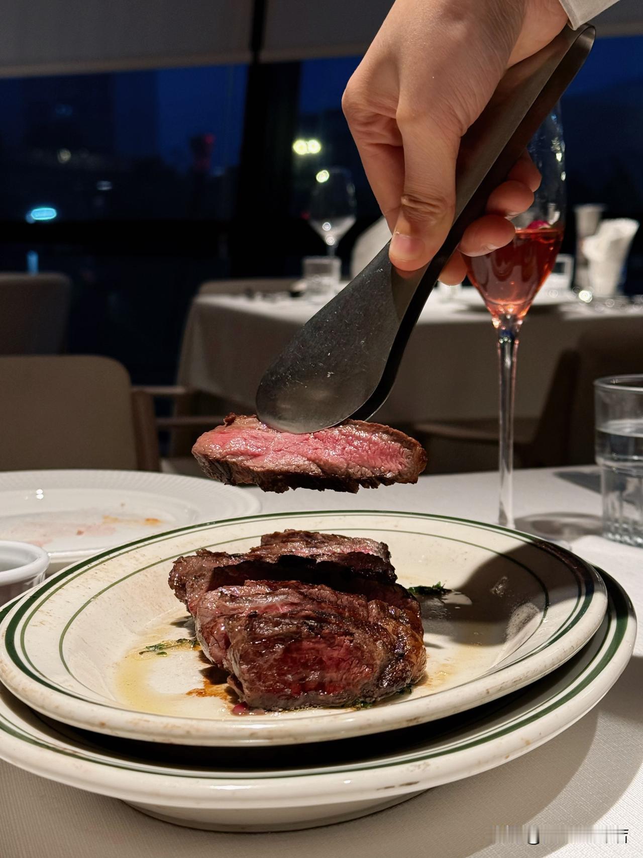但是当炭烤M5黑安格斯牛·丹佛牛排 滋滋上桌了