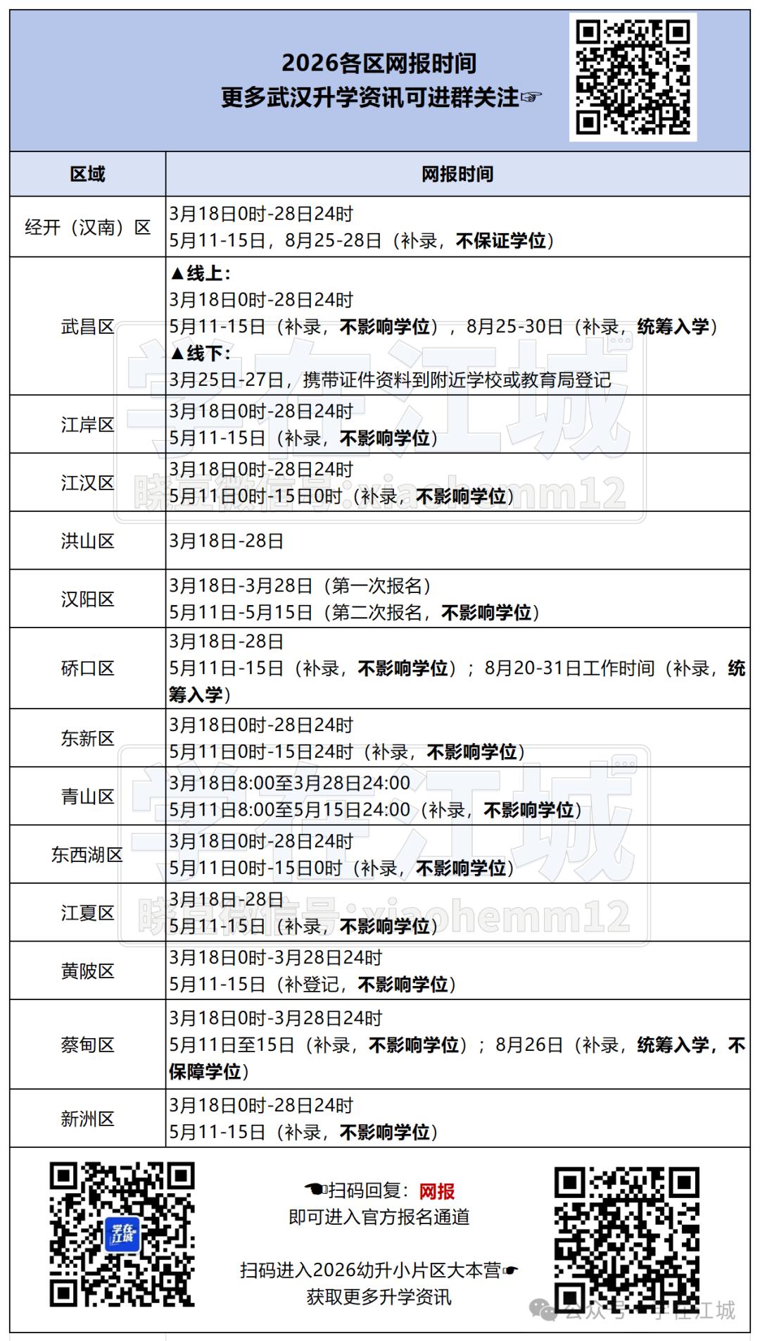 但是根据小编收集的情况来看,这只是部分情况。武汉各区目前主要还是处在网报登记状态中。根据官方的时间流程上看,现在(3月18-28日)还在提交资料阶段,审核是分批进行的,所以家长们也不需要担心等着官方的消息就好了。