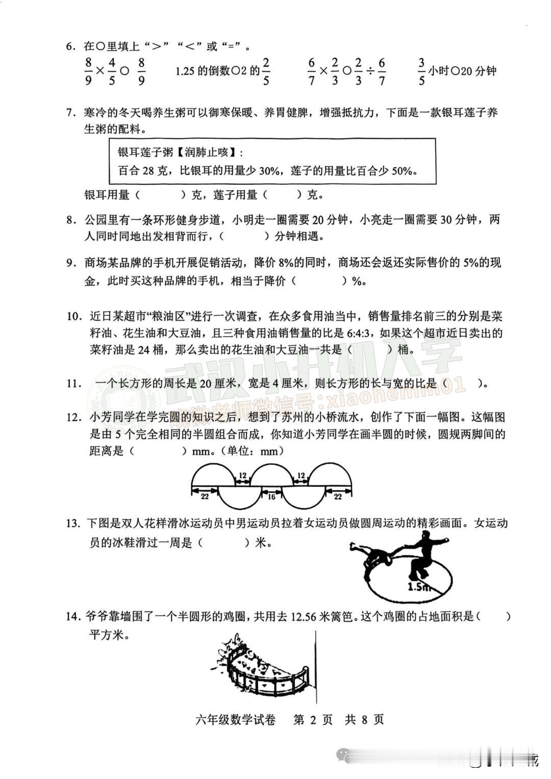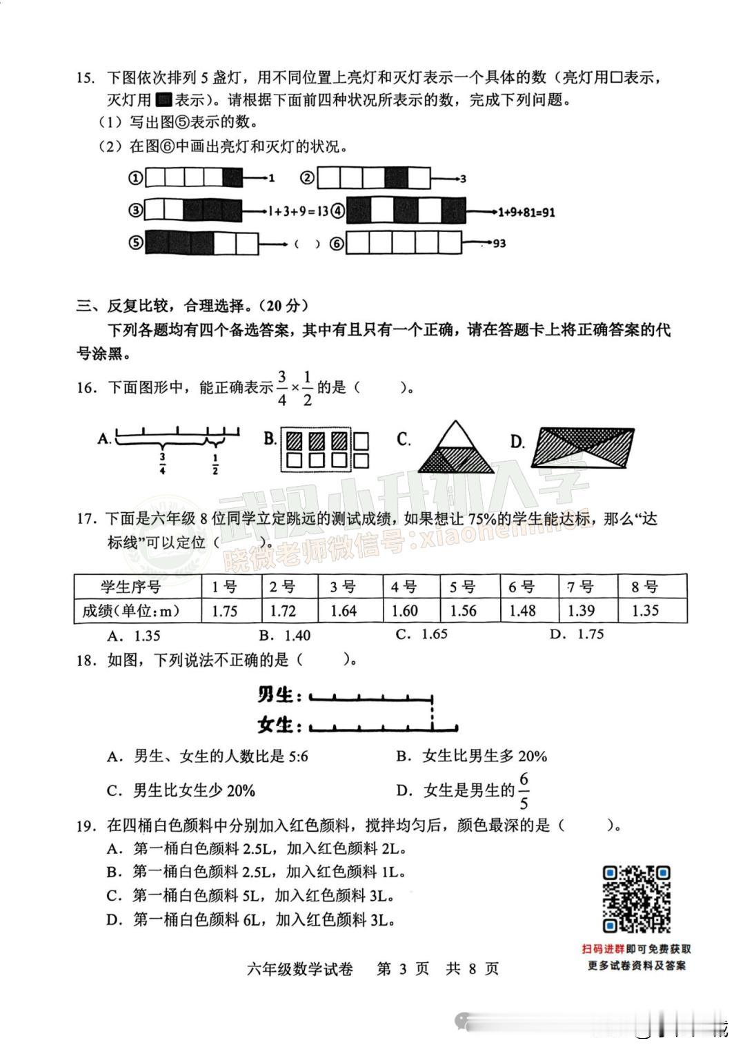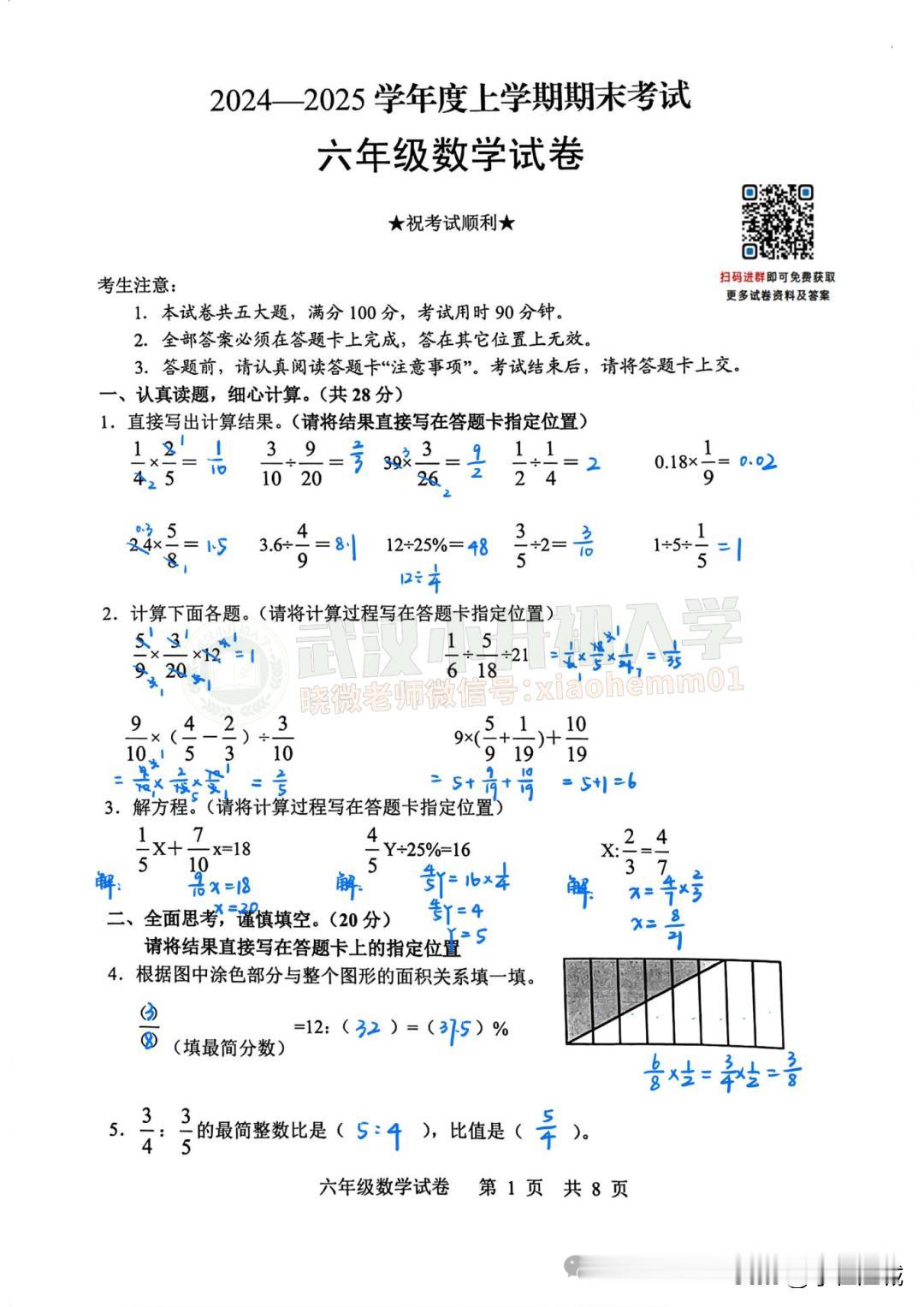 武昌区6年级元调数学试卷+答案2024-2025上学期!私信即可免费获取试卷+答案。
