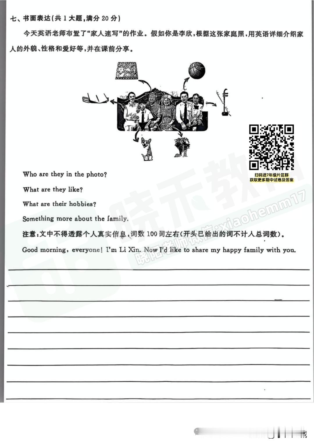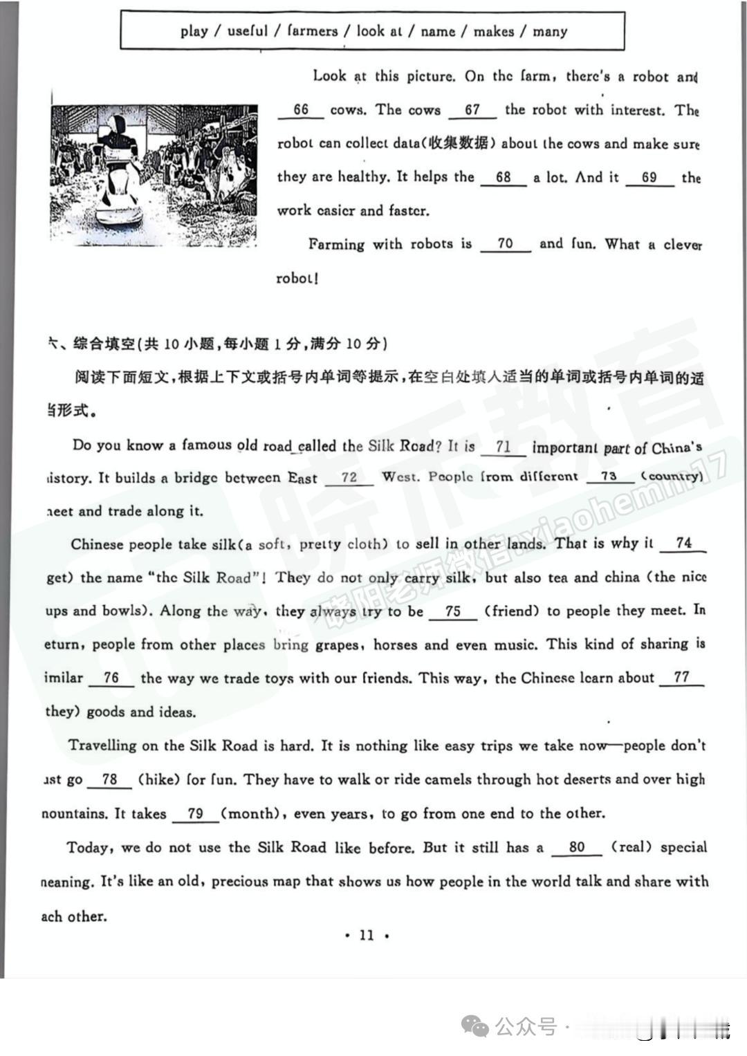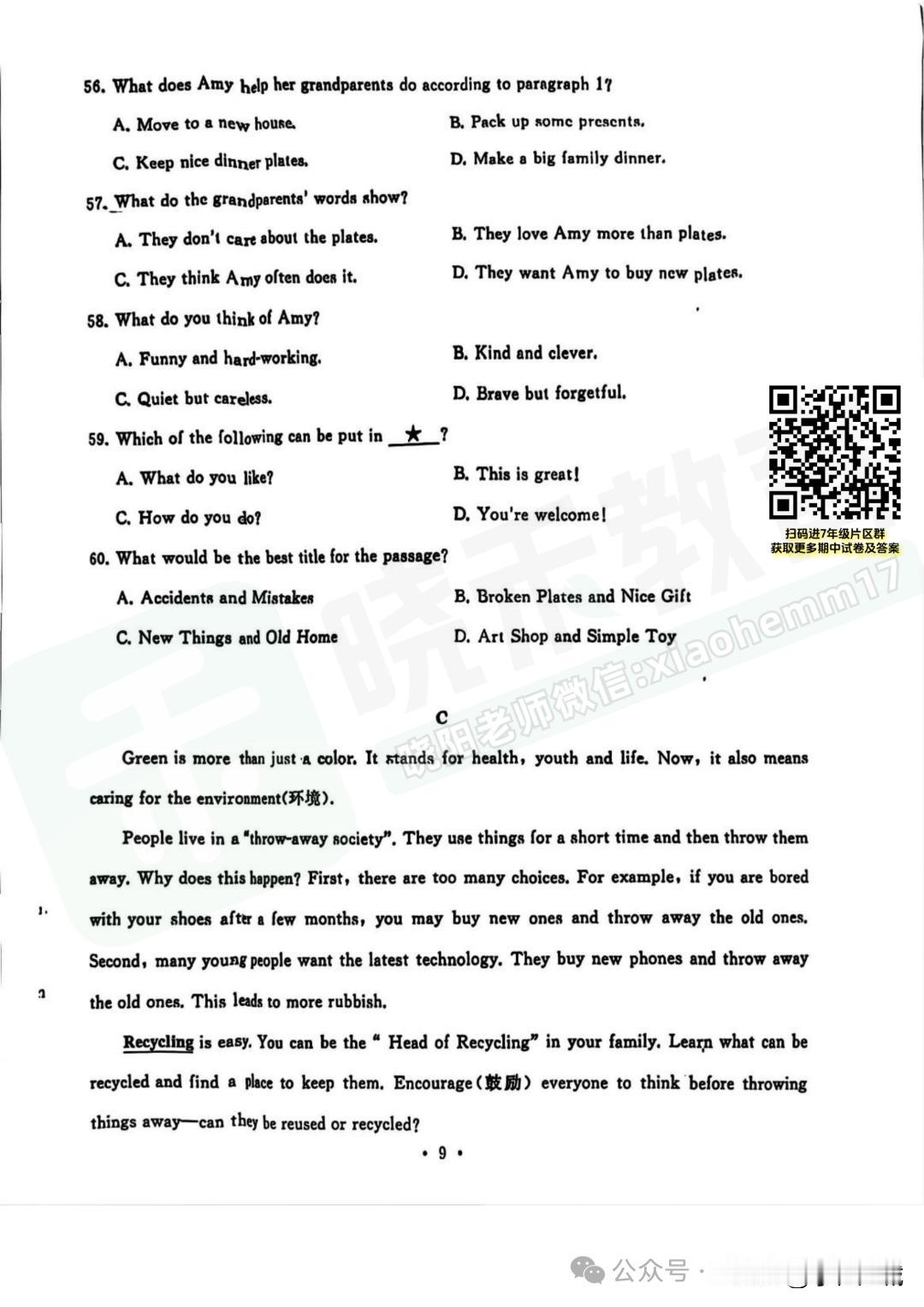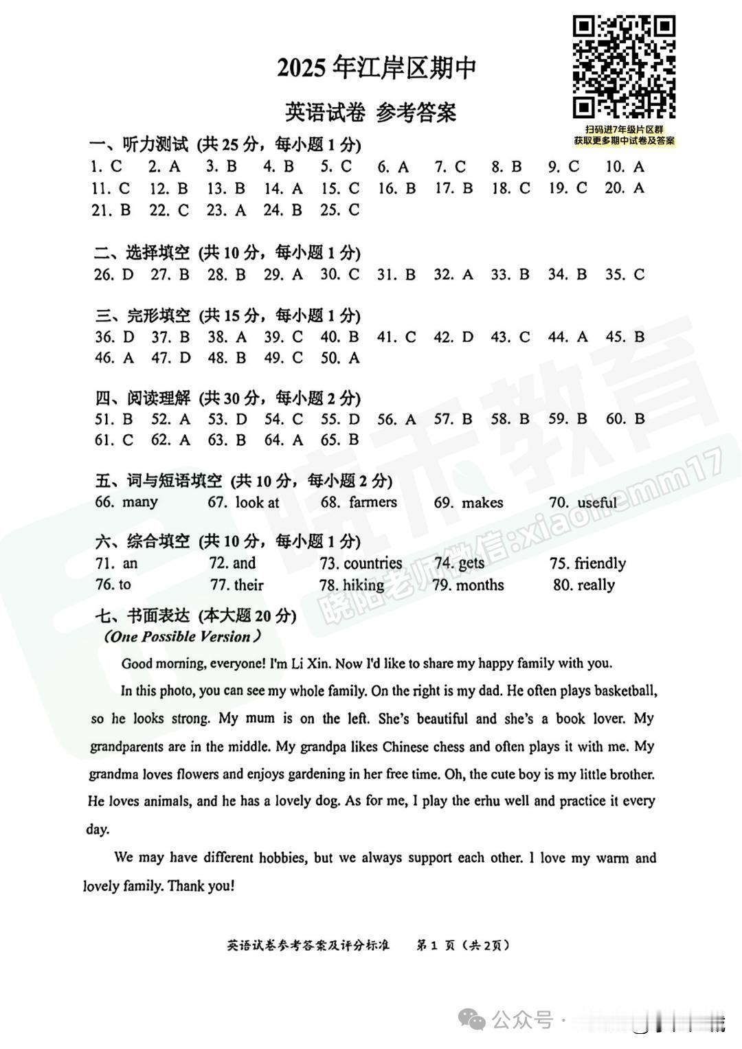 【七年级江岸区英语试卷及答案】2025-2026上学期期中 私信回复:【期中】