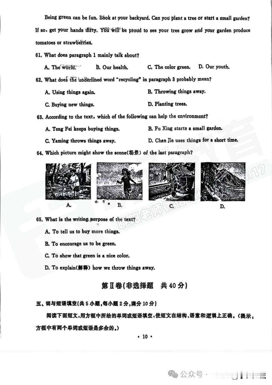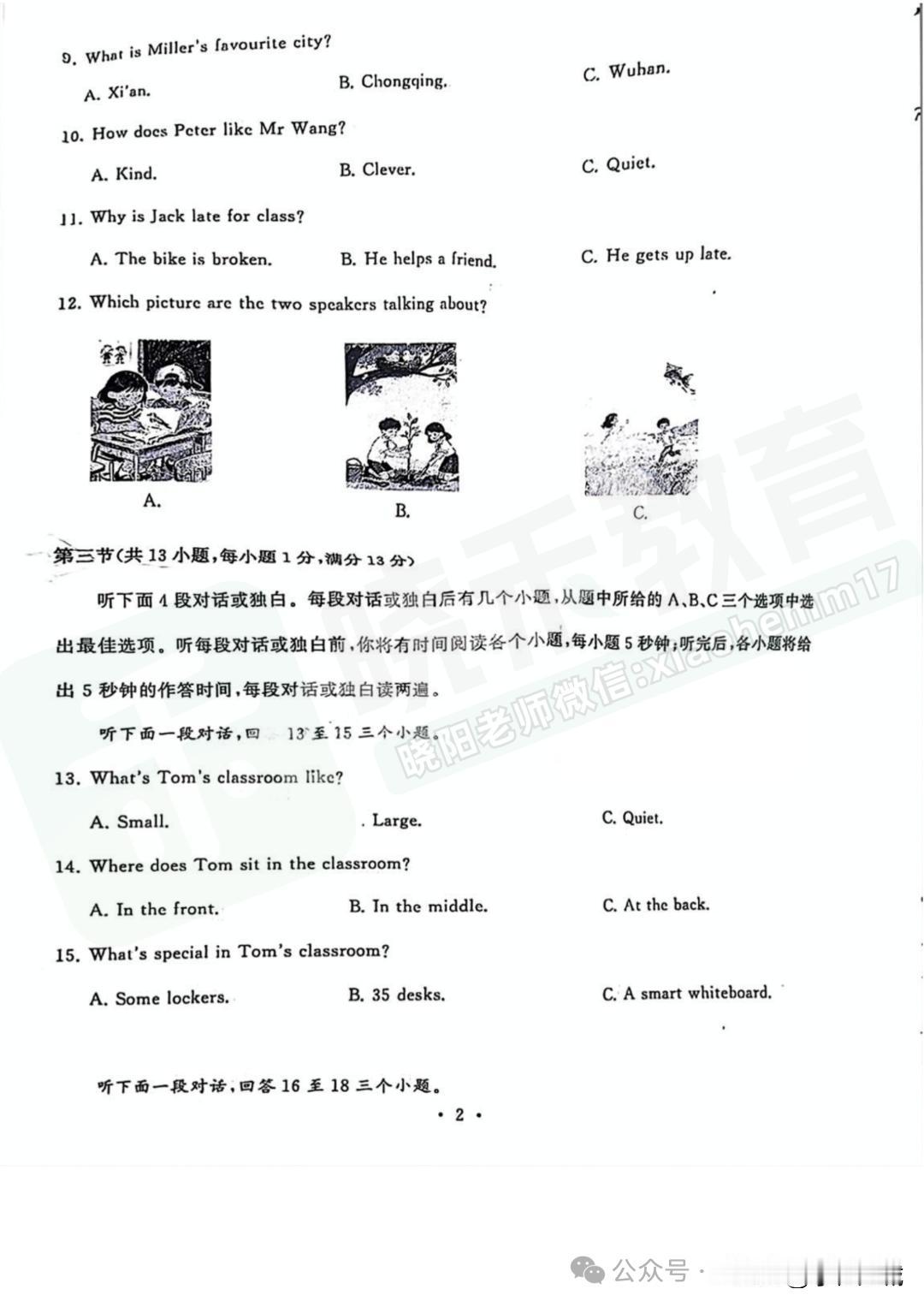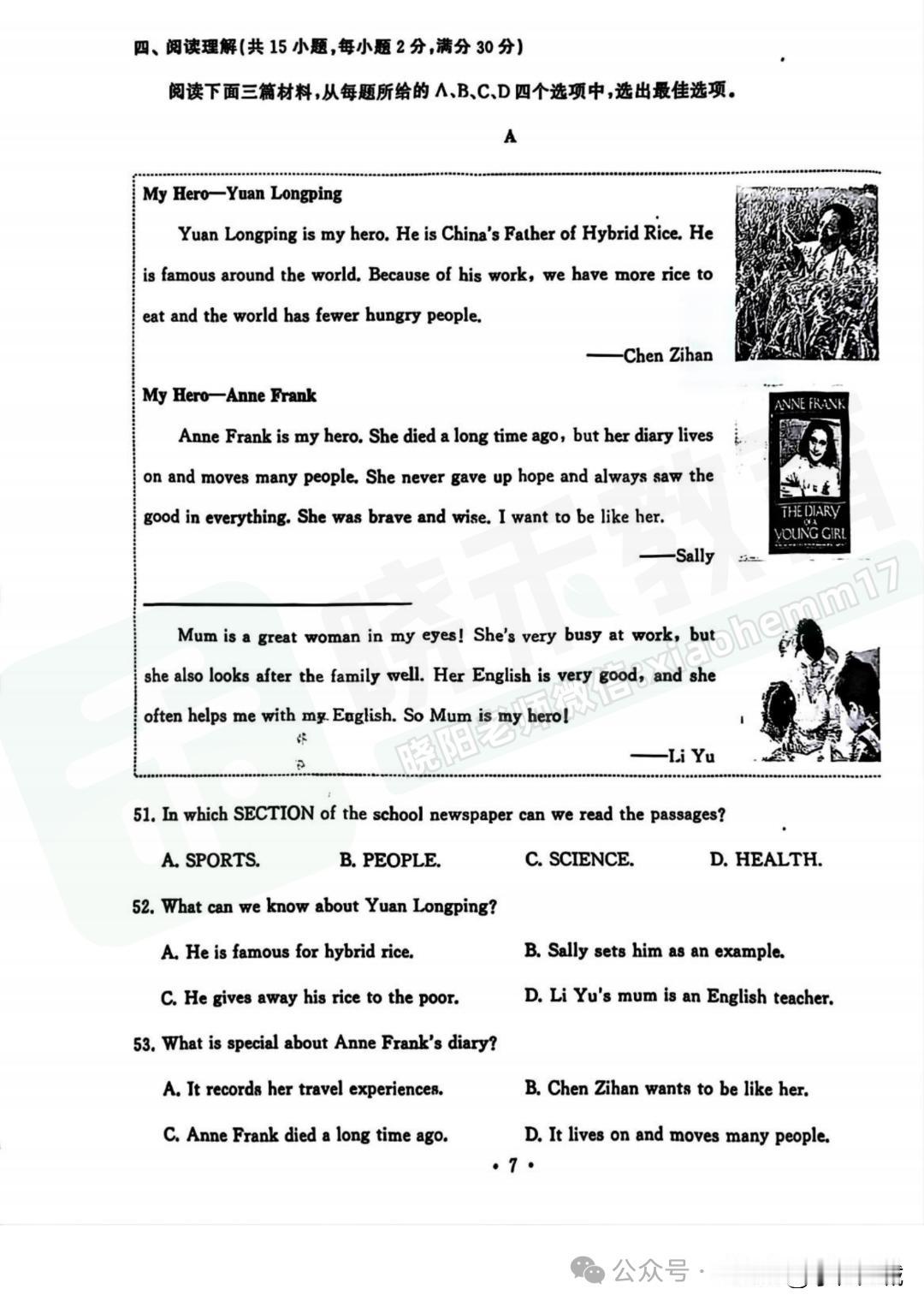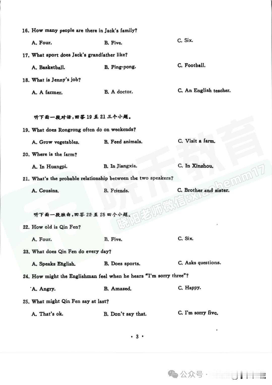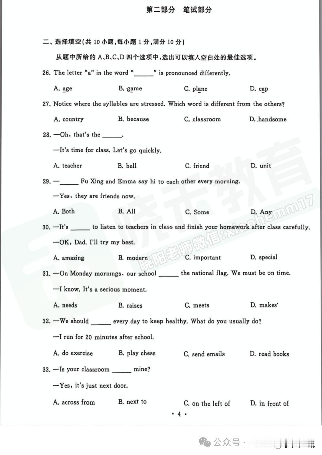 【七年级江岸区英语试卷及答案】2025-2026上学期期中 私信回复:【期中】