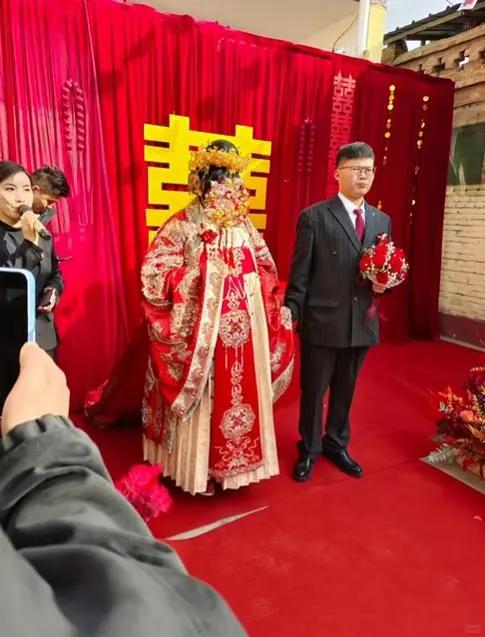 朱雪梅当天穿着新娘服,感觉像是唐代的丰腴美人一样。