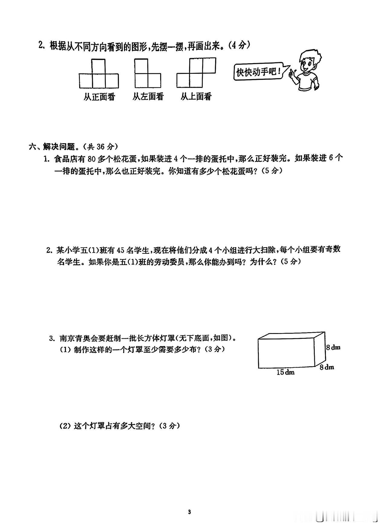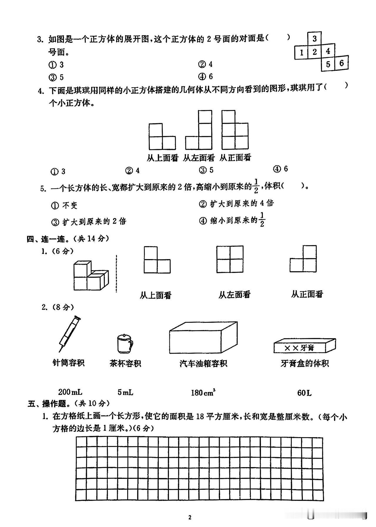 五年级数学下册第一~三单元测评练习,挑战你的思维极限!