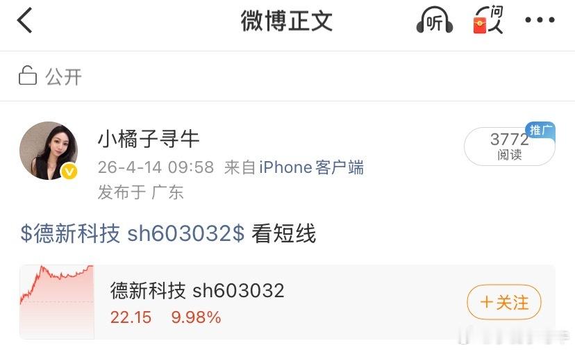 行情不是一天铸成的,投资也不是一天就能翻倍的,需要一点一点滴去成长,让我们一起成长,让 财富天下 不断升值!橘子进了的有: 光智科技 、嘉泽新能、华盛昌$昂利康 sz002940$ 以上已卖出