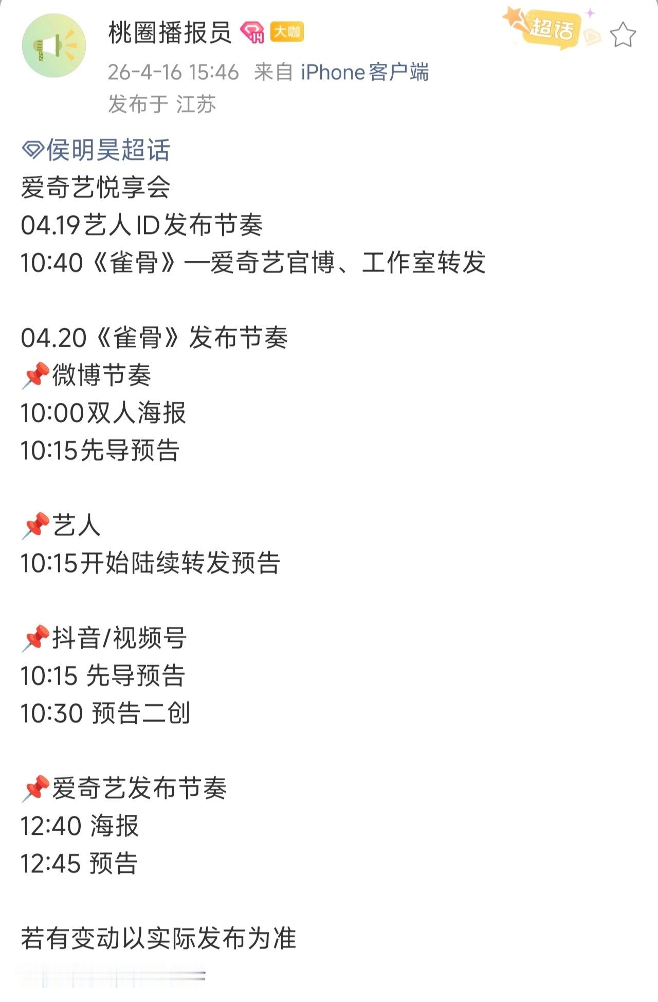侯明昊的两部待播剧《雀骨》《碧血蝉》4.20都有物料,燥候!