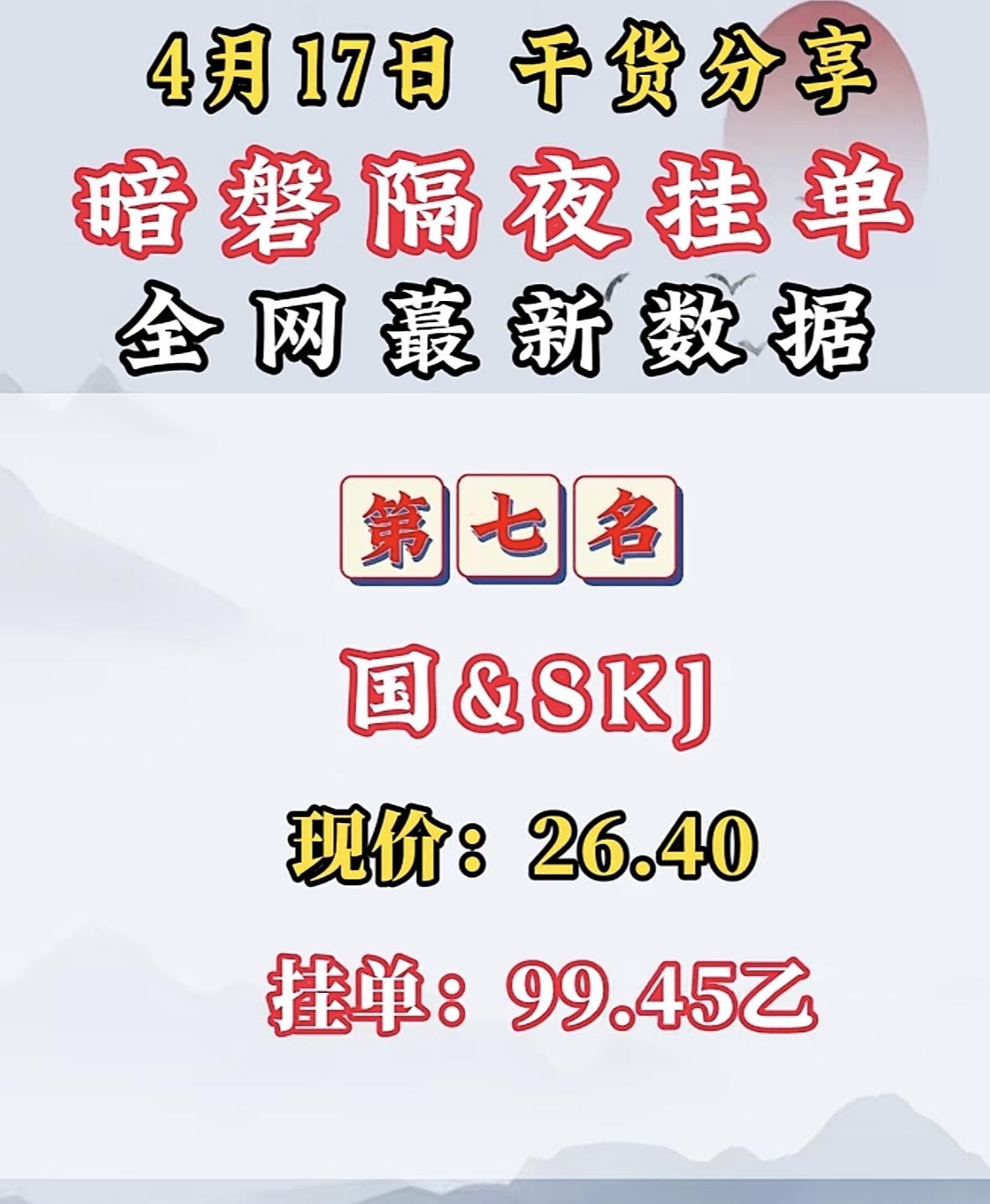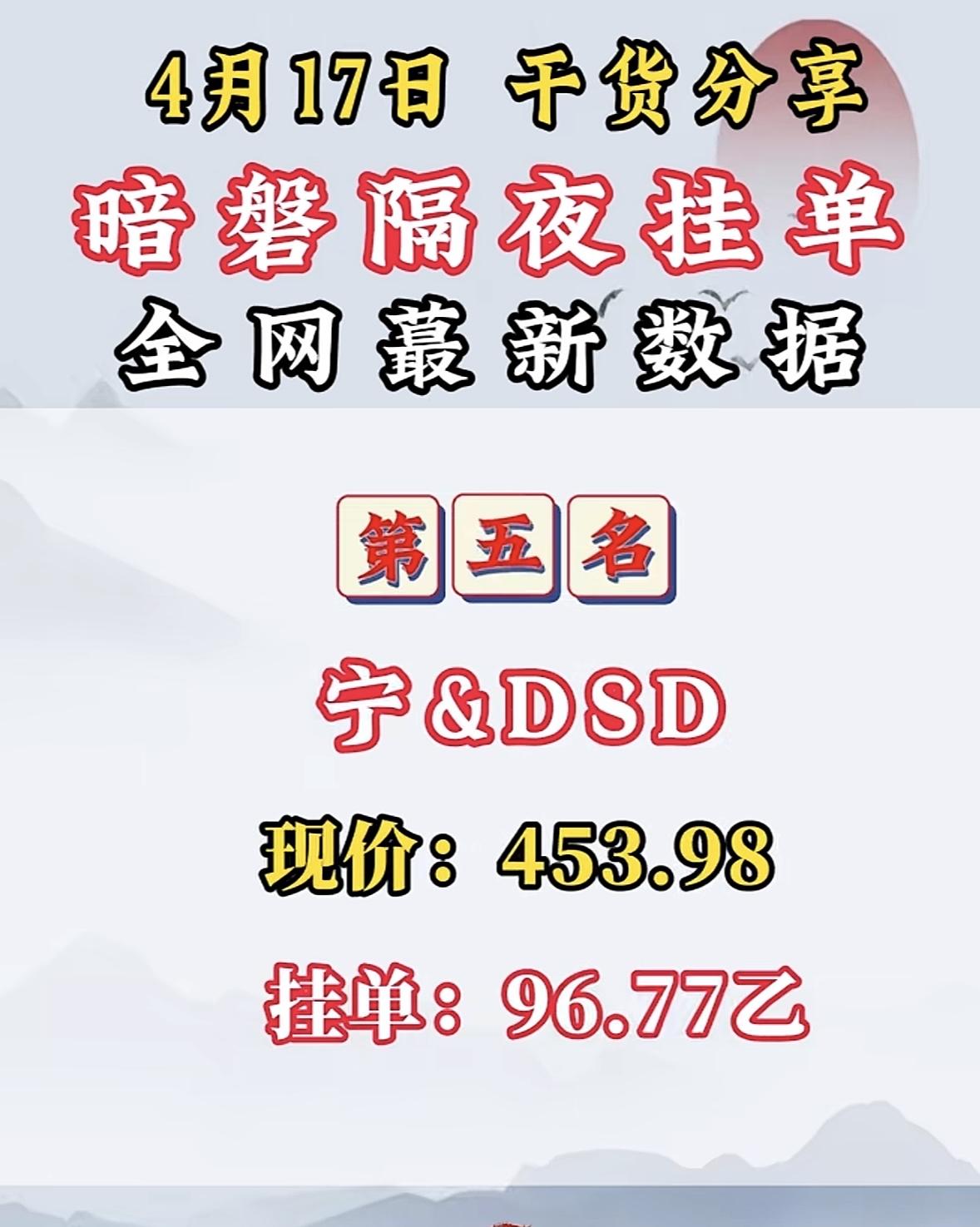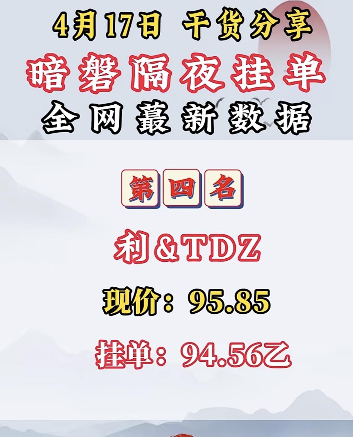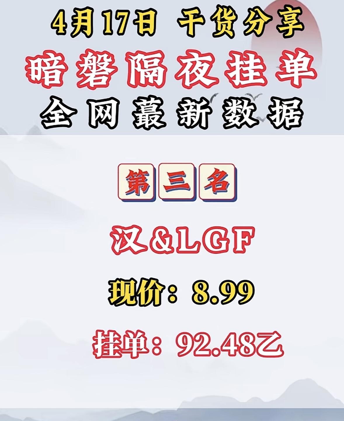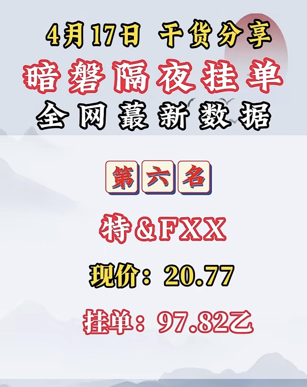 4月17日周五暗盘隔夜挂单排行榜揭晓