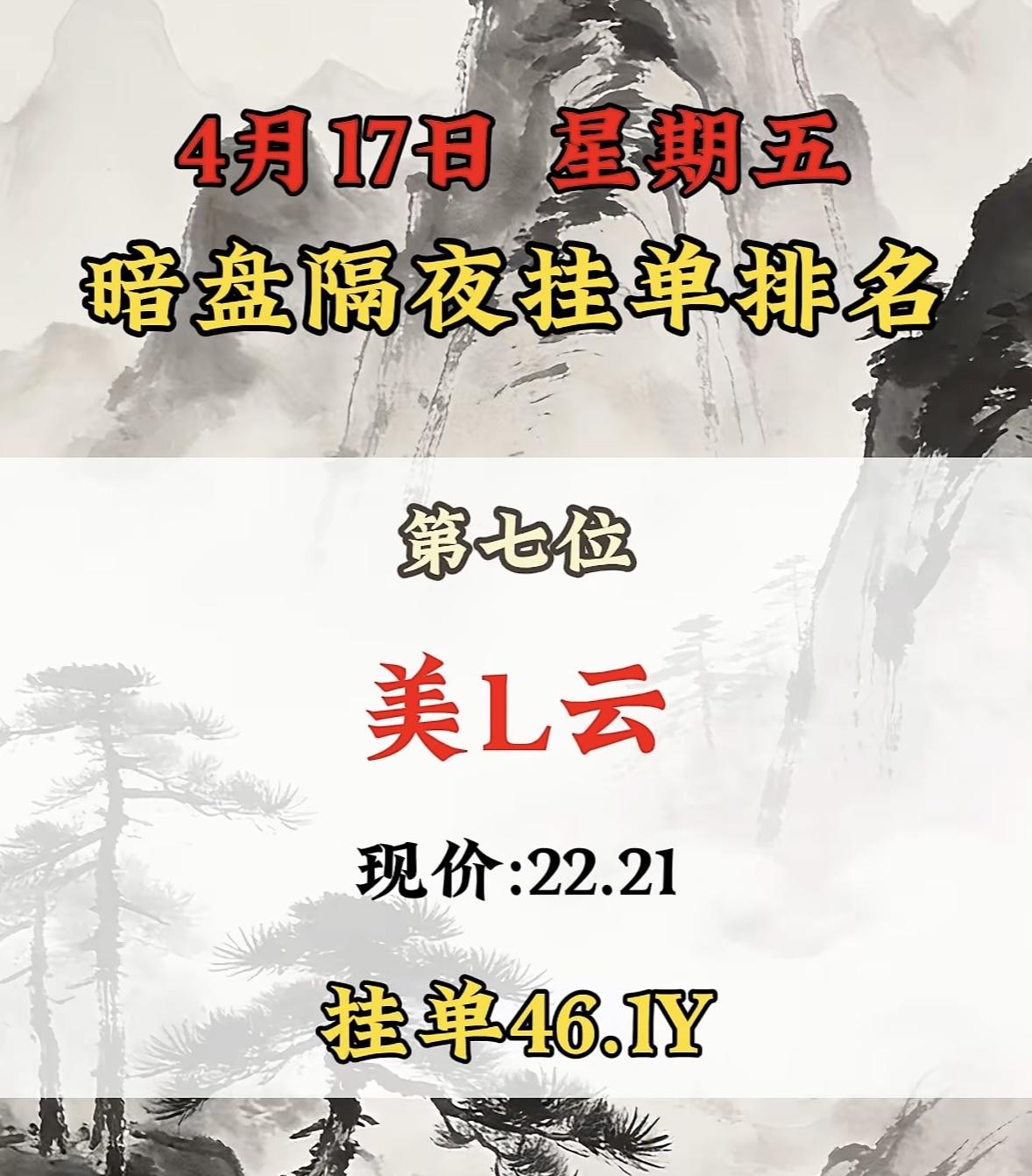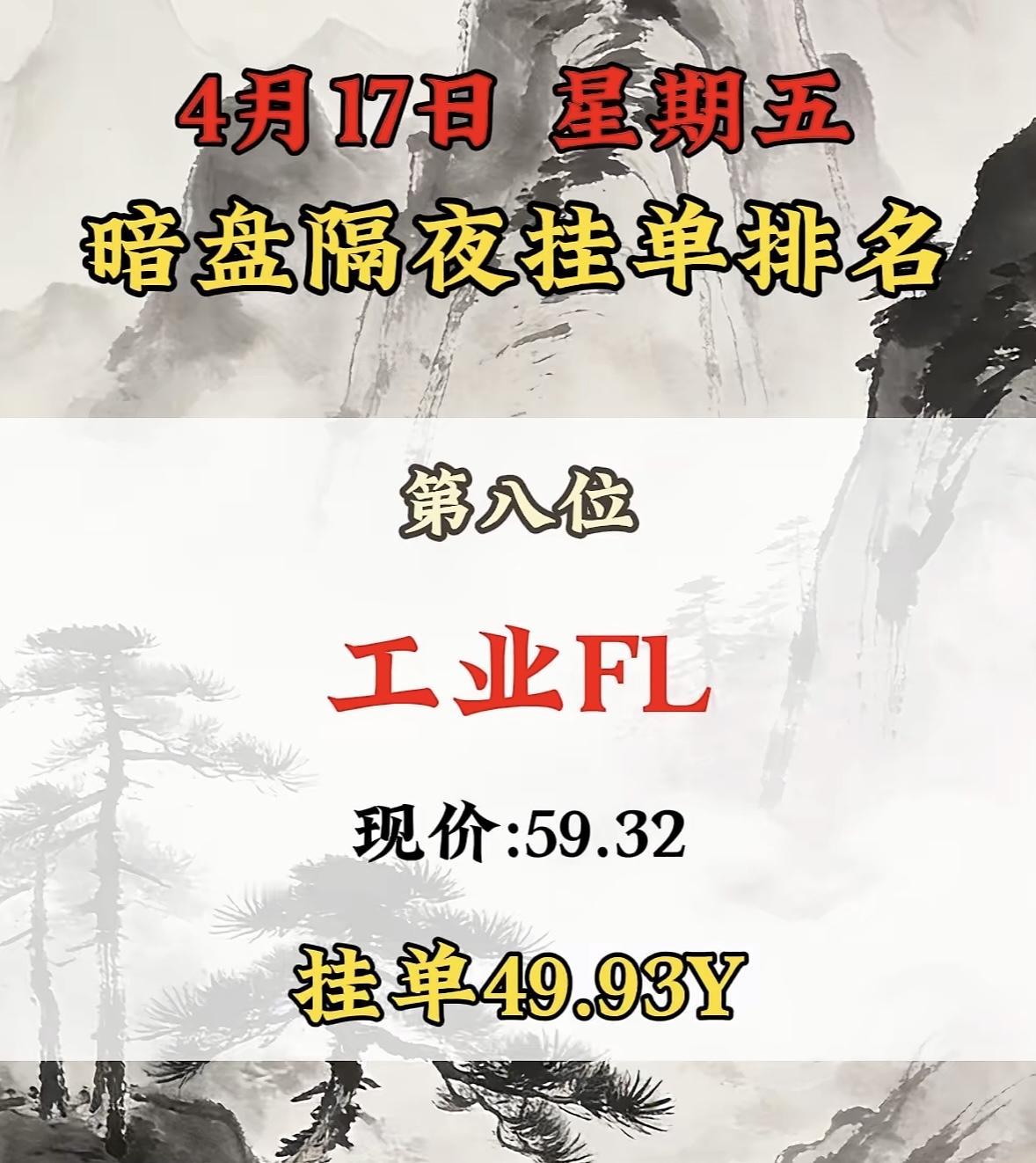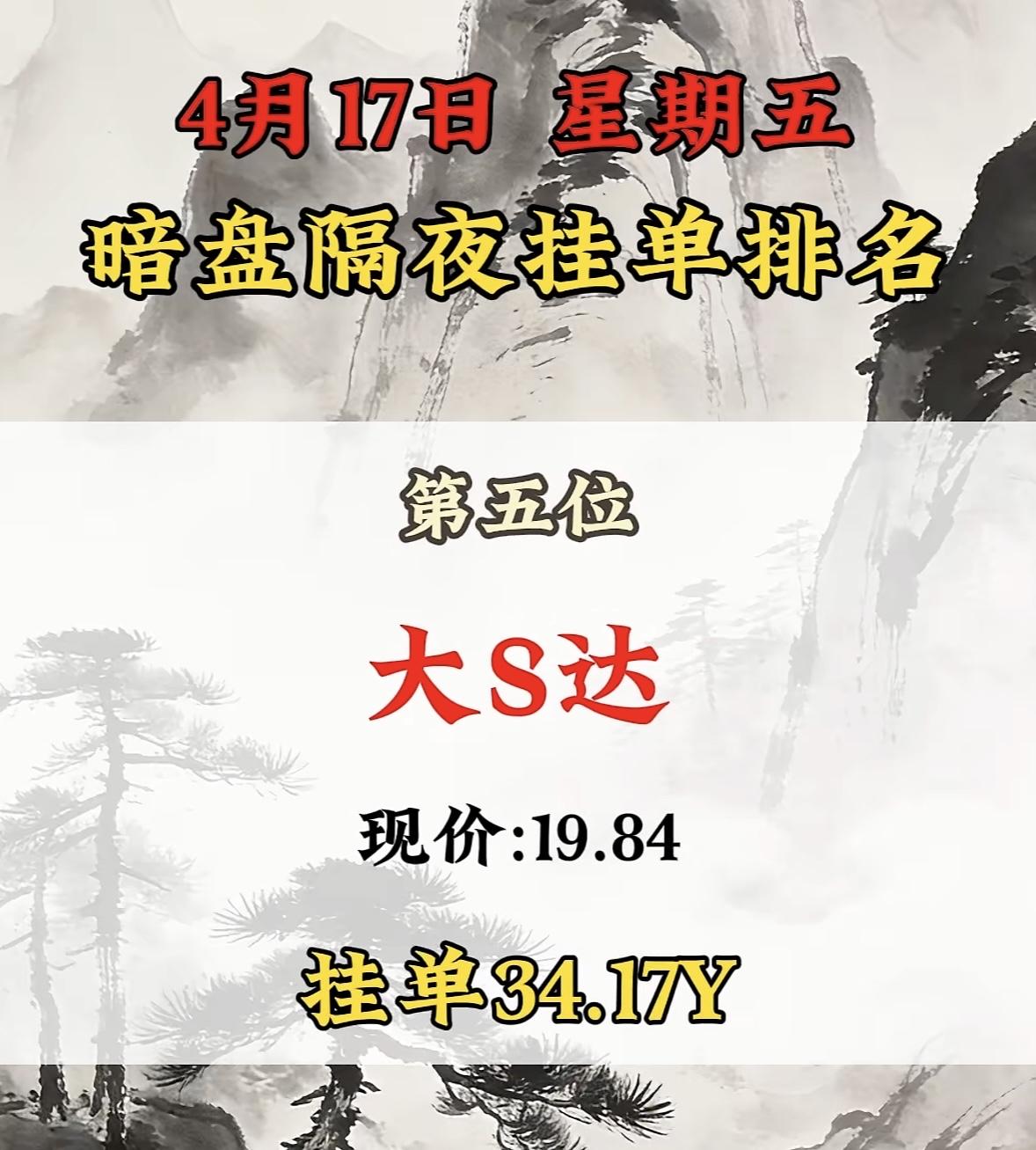 4月17日周五暗盘隔夜挂单排行榜出炉