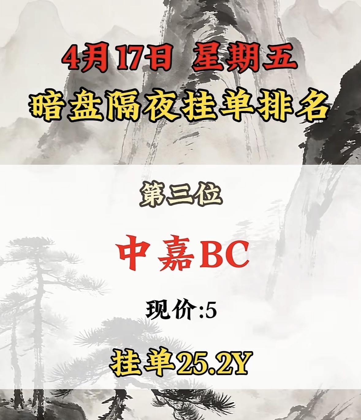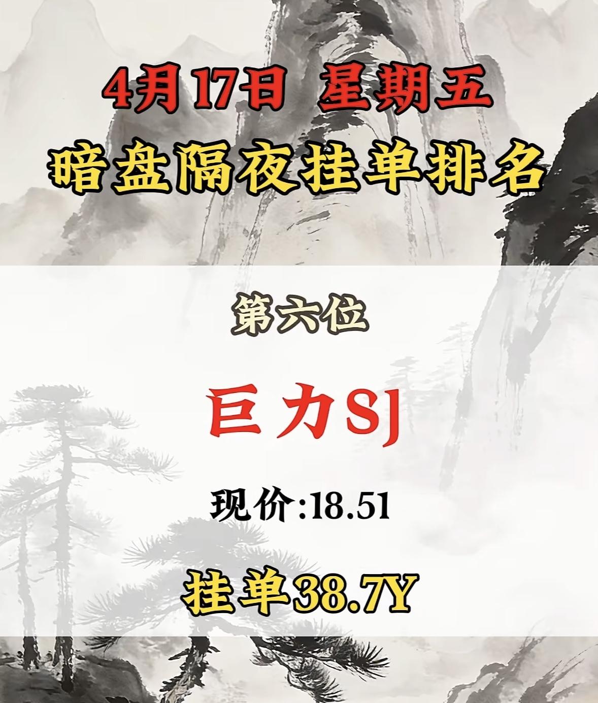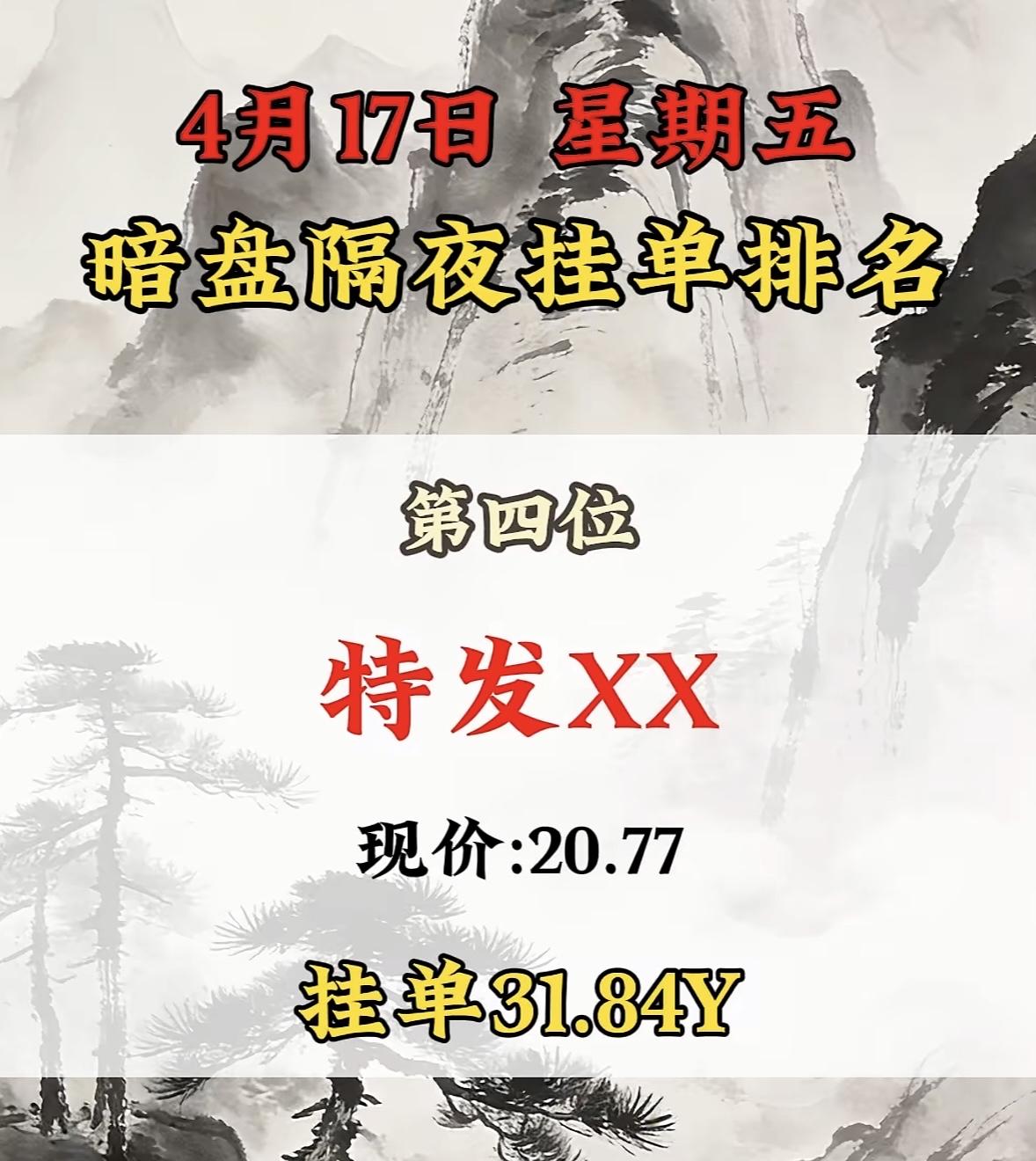 4月17日周五暗盘隔夜挂单排行榜出炉