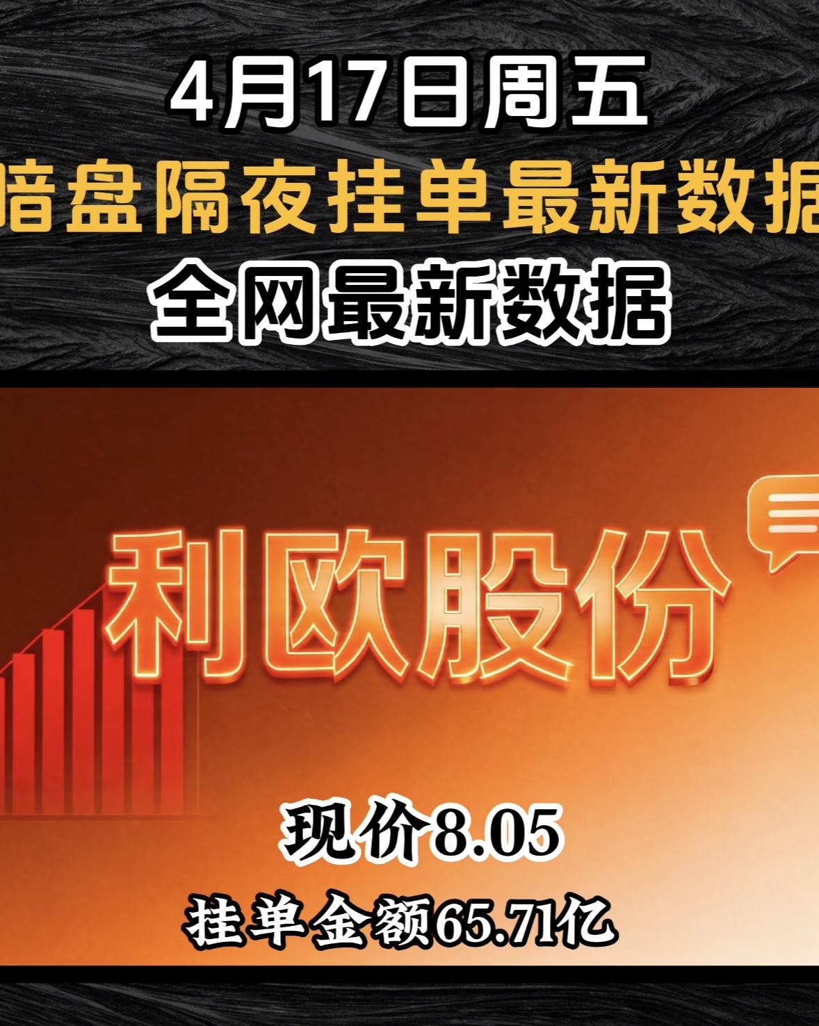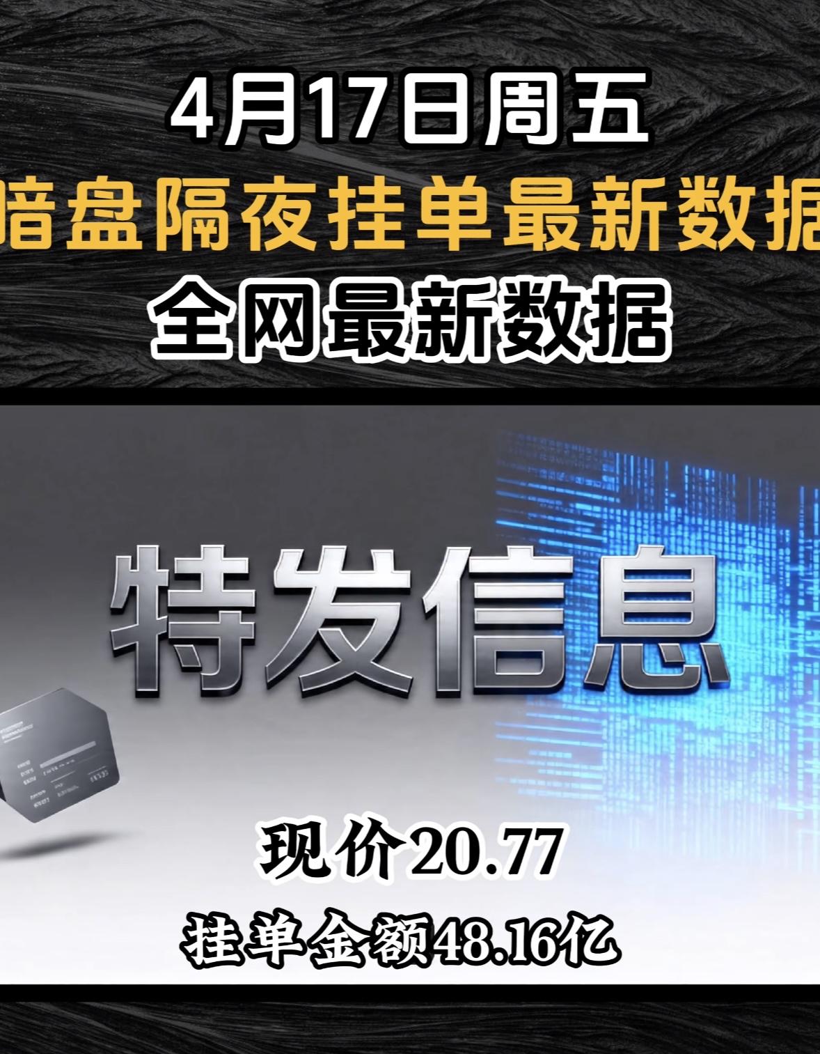 4月17日周五暗盘隔夜挂单排行榜出炉,全网最新数据发布! 📈📊💡 4月1