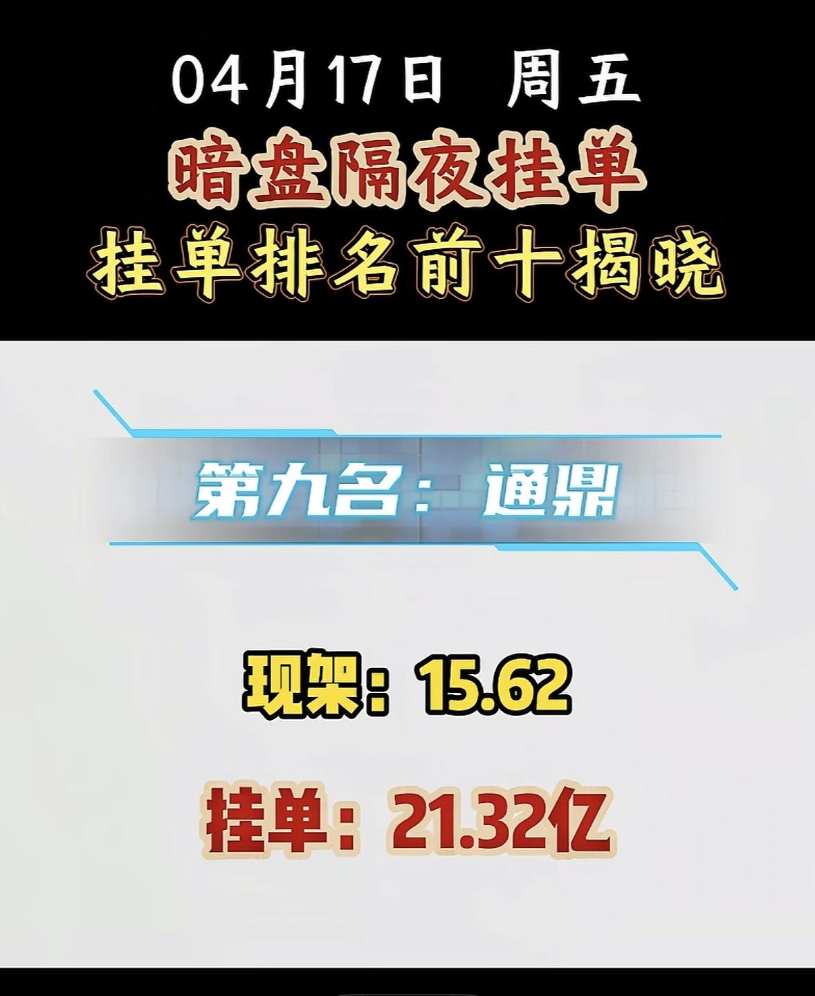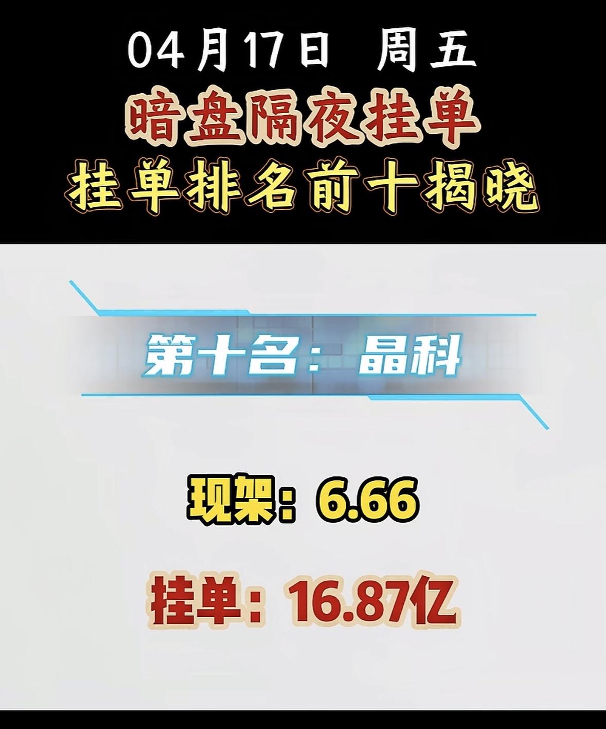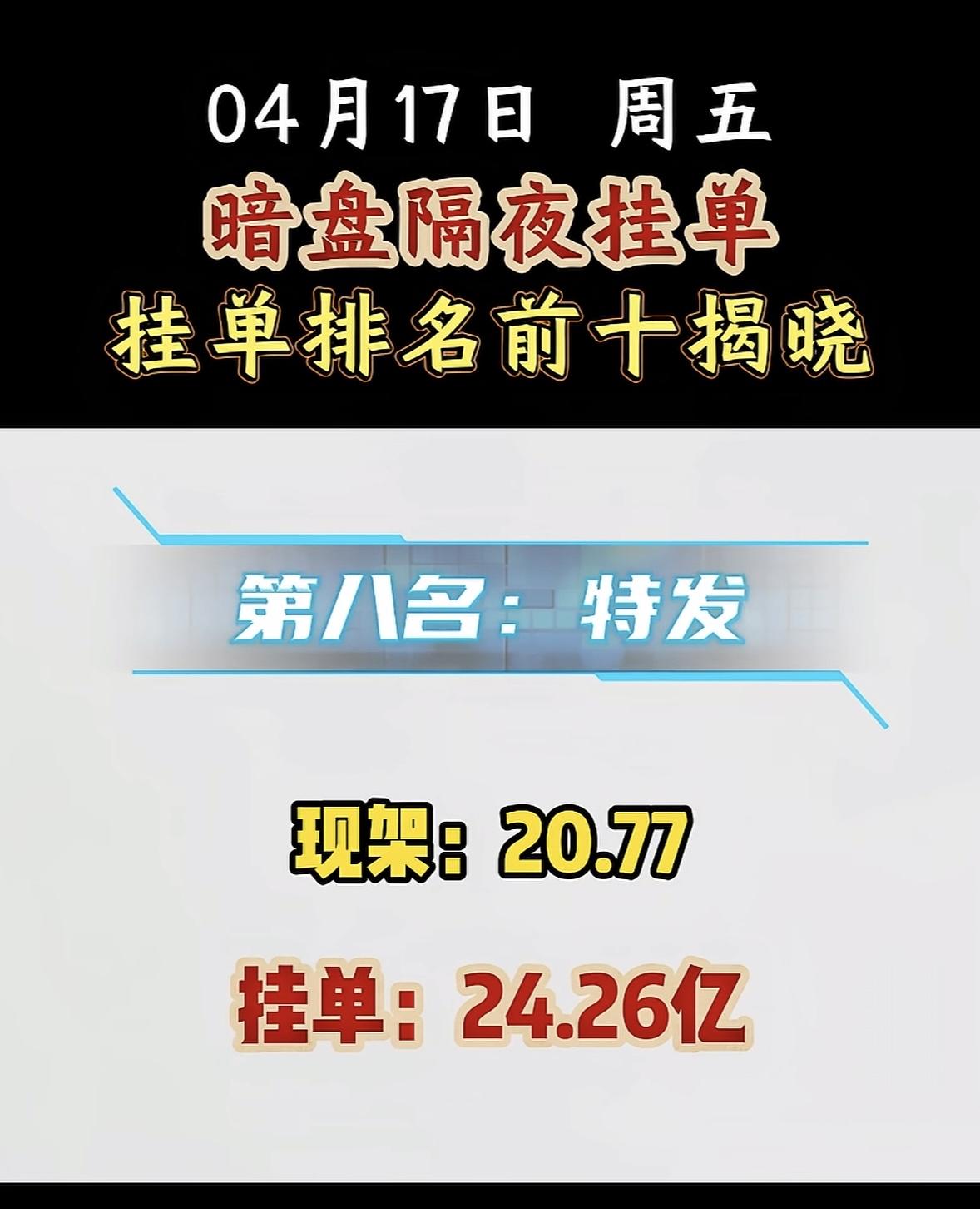 4月17日周五暗盘隔夜挂单排行榜揭晓 暗盘隔夜挂单这事儿可太有看头了!就说2月