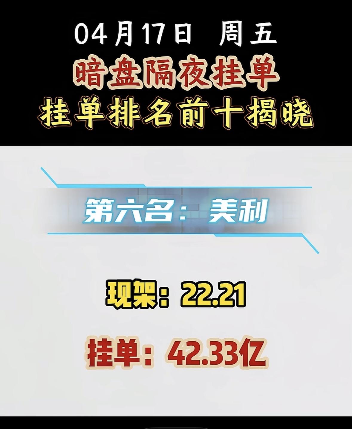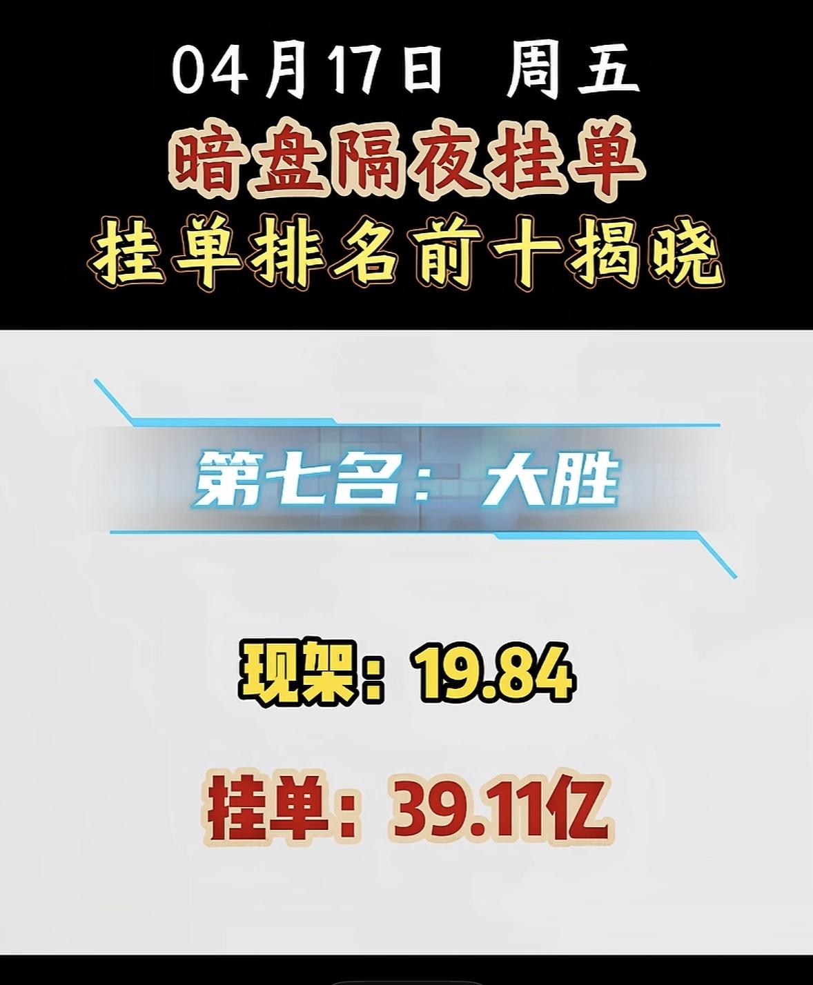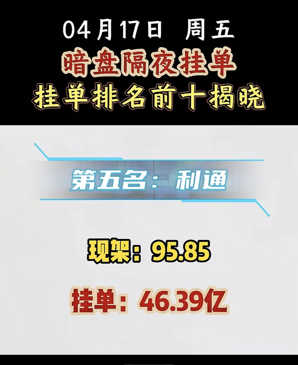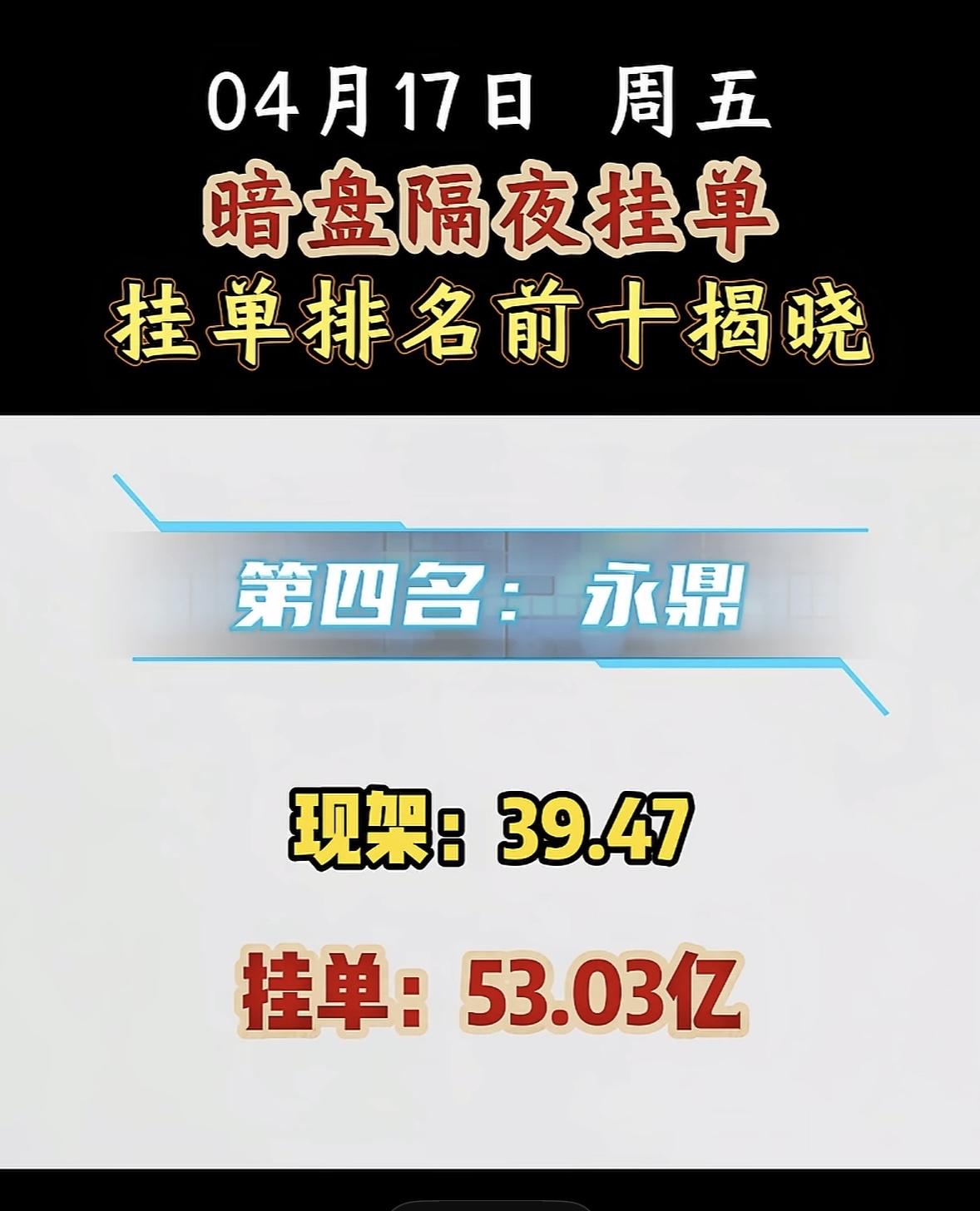4月17日周五暗盘隔夜挂单排行榜揭晓 暗盘隔夜挂单这事儿可太有看头了!就说2月