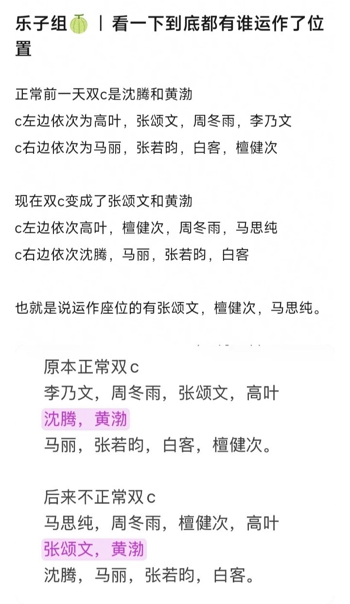 关于沈腾的座位问题,现在又有人说是张颂文抢的是高叶的座位,马思纯抢的是李乃文的座位,檀健次抢的是张颂文的座位。