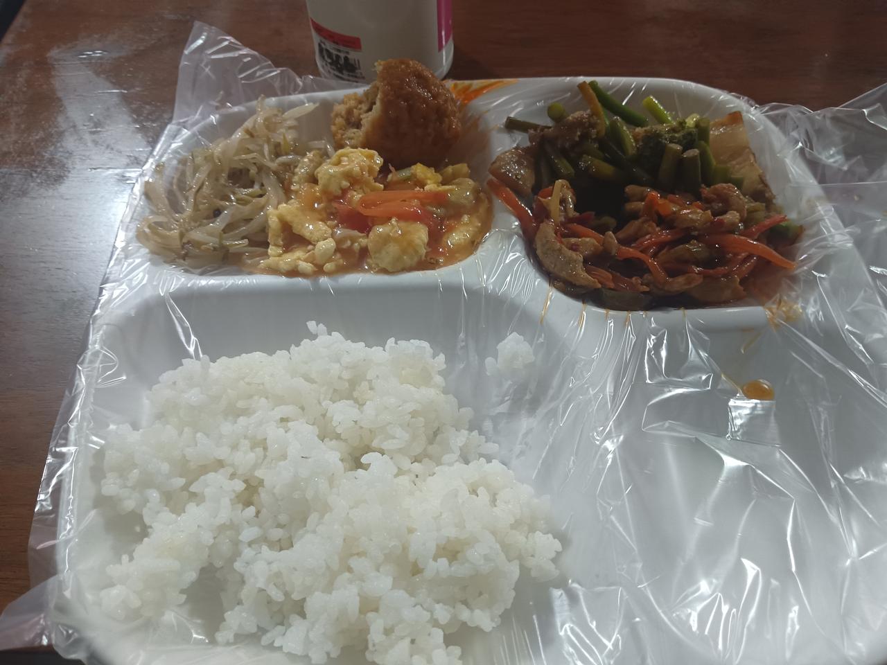 中午我们在舍伯吐吃的,四菜一汤,还挺好,本来以为晚上都这么晚了,应该也不能差,真的没想到啊,让我们吃的是13元的盒饭,然后住的旅店也就80块钱的标间,反正今天的体验感不咋滴,看看明后天吧!