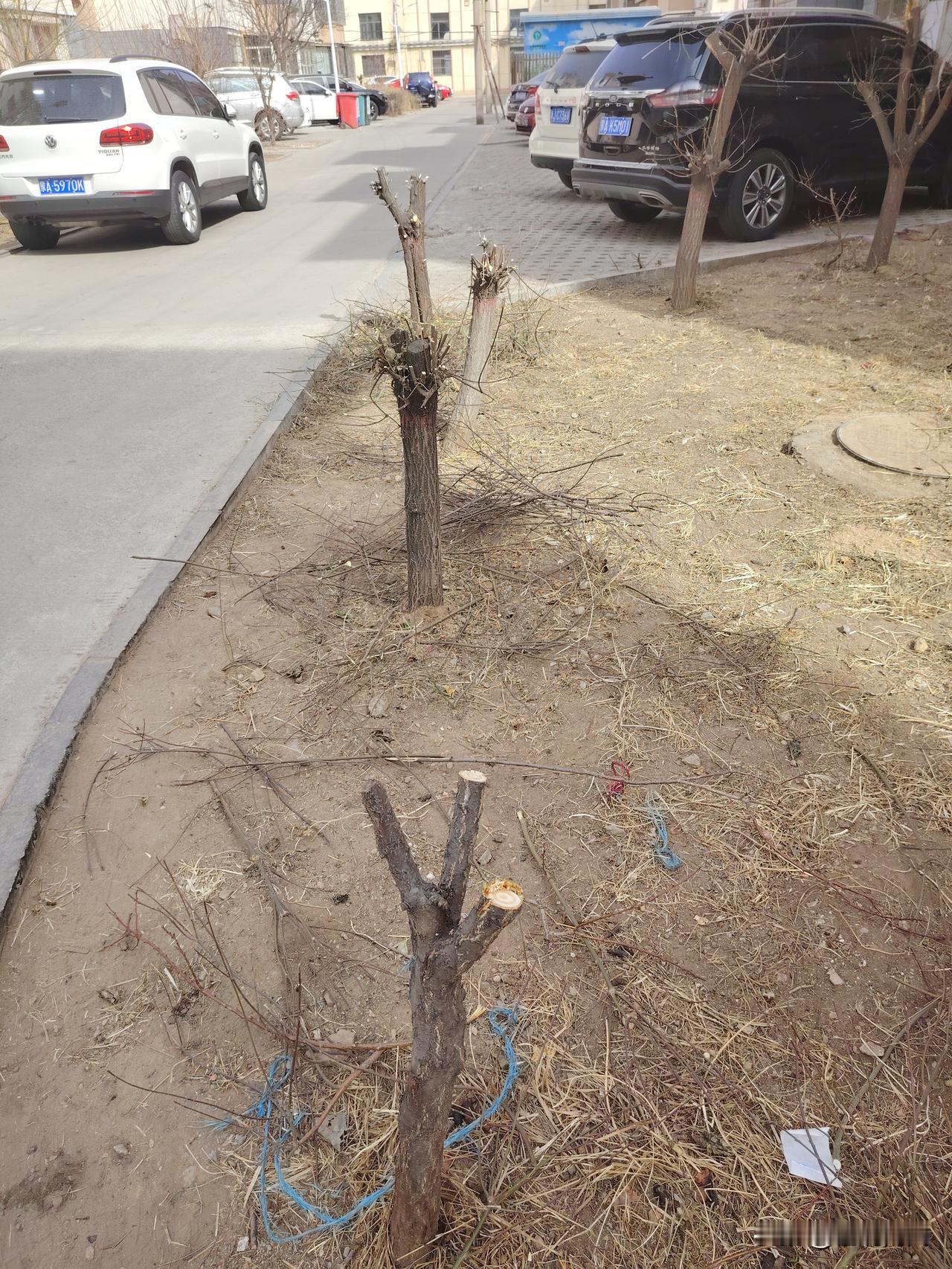 本该每年像图3杏花🌸🌸🌸满枝头,结果(图2)的杏树被物业砍得光秃秃,现在也没长出一个枝丫!结果小区过往车俩还把绿化带压得不长草!