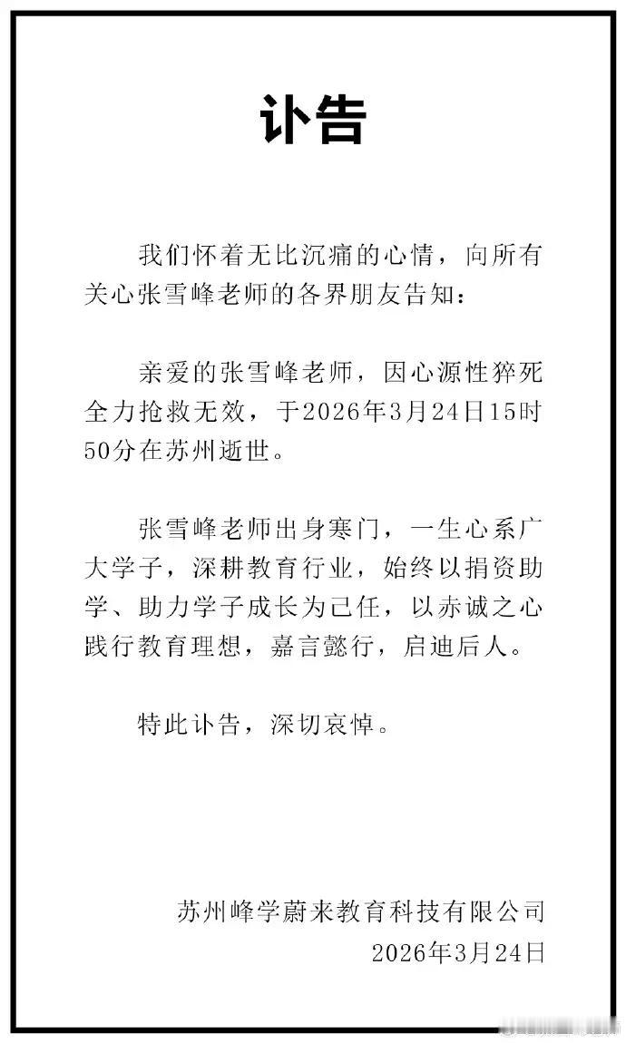 噩耗!张雪峰老师猝死了,生命定格在了41岁,今后再也看不到他的直播了,今年你家孩子高考的话,还会有谁为你指点迷津呢?