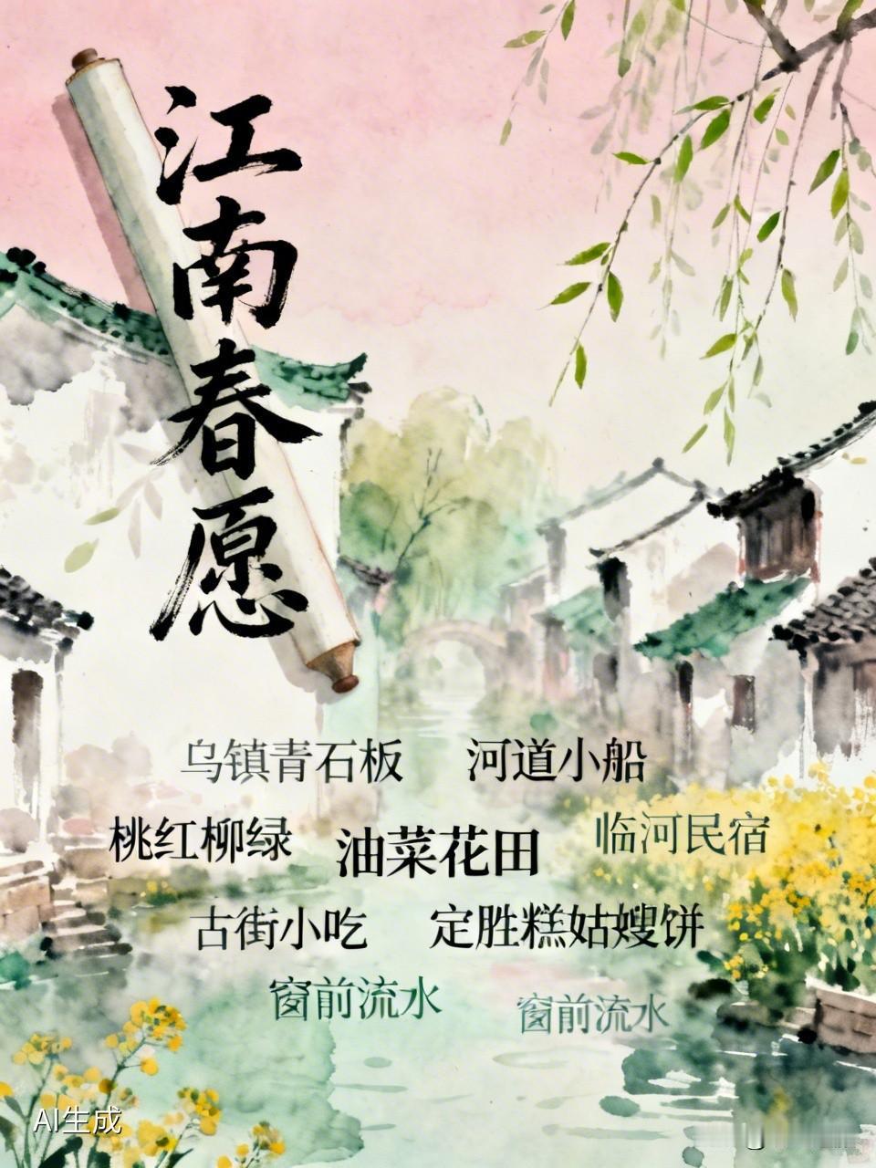 春天的江南古镇,桃红柳绿,油菜花盛开,处处充满生机。我想找一家临河的民宿,白天逛逛古街,尝尝当地的特色小吃,像定胜糕、姑嫂饼。晚上坐在窗前,听着潺潺流水声,感受这份宁静与惬意。远离城市的喧嚣,让身心在这江南水乡得到彻底的放松,这就是我今年春天心心念念的事儿。