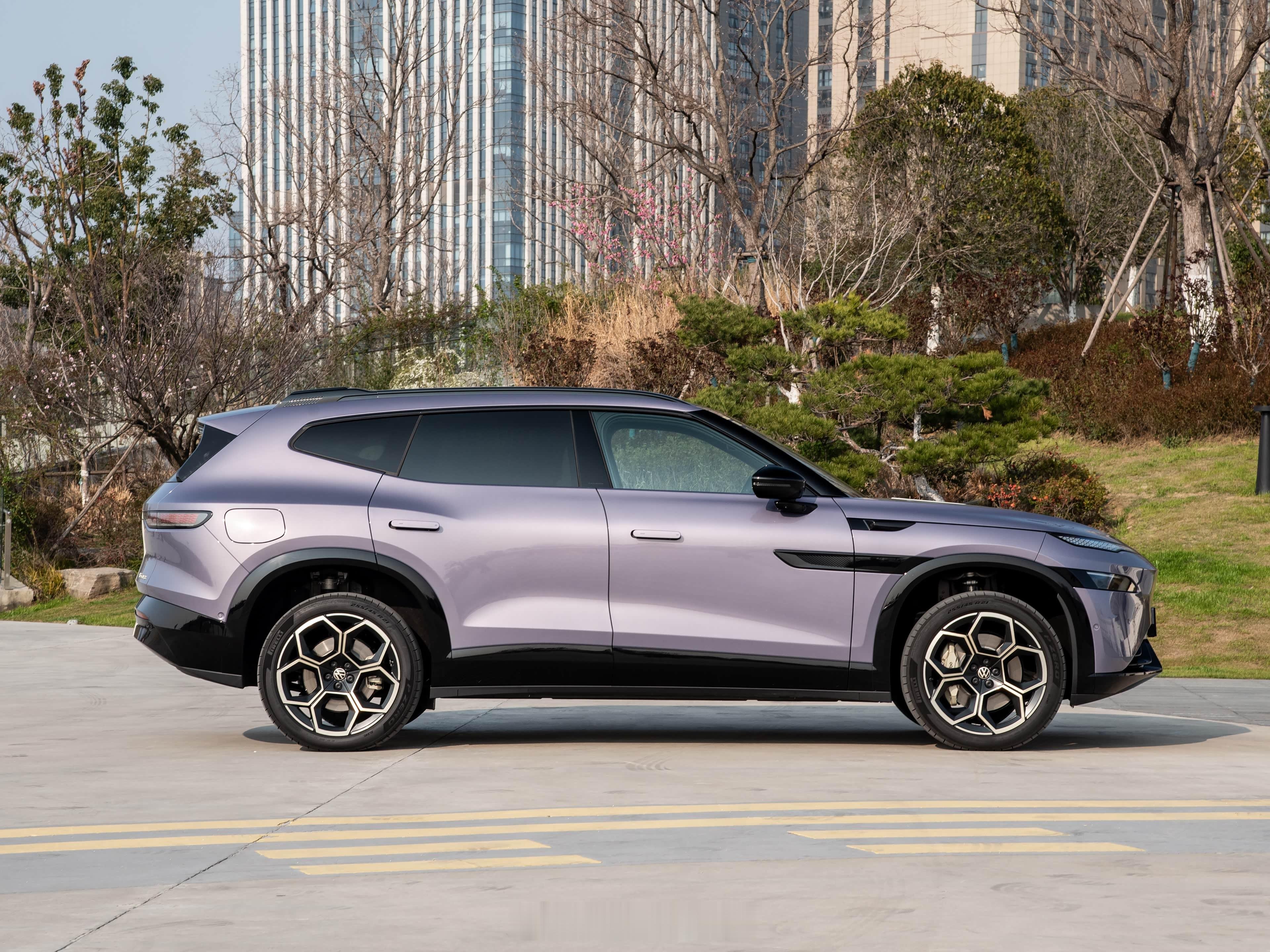 纯电动 中大型SUV车长5000,轴距3030Brembo前四活塞固定卡钳前双叉臂/后五连杆独立悬架双腔空悬+DCC减震(顶配)AI智能底盘+魔毯智能预瞄(顶配)