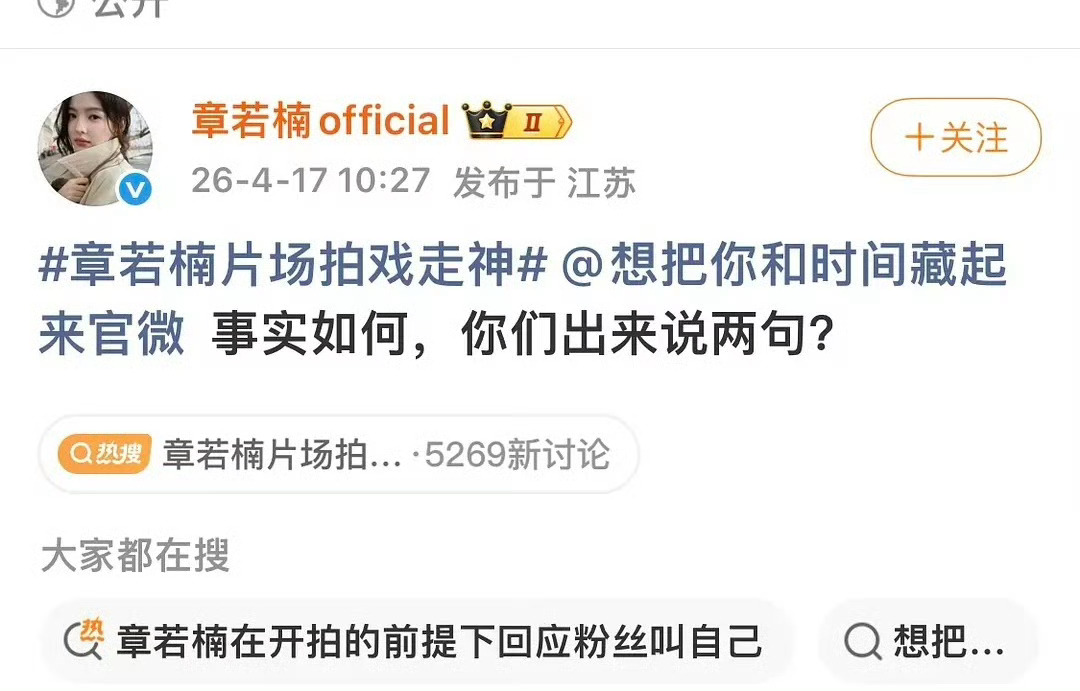章若楠这件事还另有隐情?这都什么粉圈畸形行为…章若楠片场拍戏走神