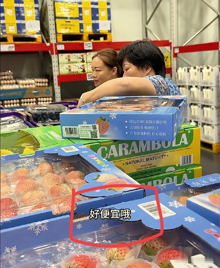 一盒蓝莓59元,阿姨说好便宜,赶紧建议小凤拿一盒,此时的周阿姨也没有意见,还在一旁感叹好便宜。