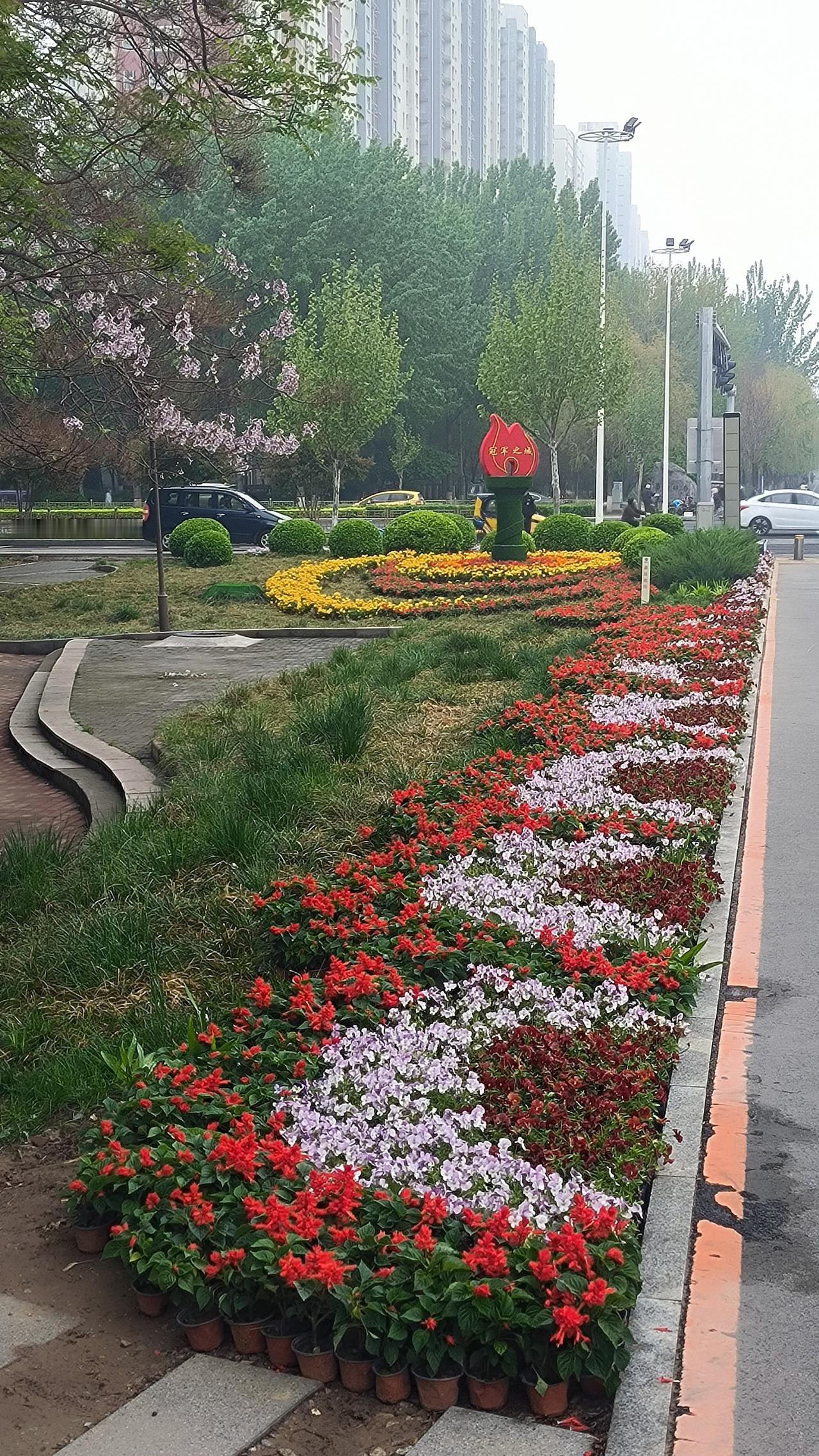 距离保定马拉松鸣枪开赛仅剩两天,恒祥北大街与北堤路交叉口,鲜花绿植环绕,“冠军之城”氛围拉满,保马蓄势待发!
