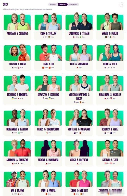 马德里1000女双名单张帅/梅尔滕斯徐一璠/蒋欣玗杨钊煊/帕诺娃红土撒野季