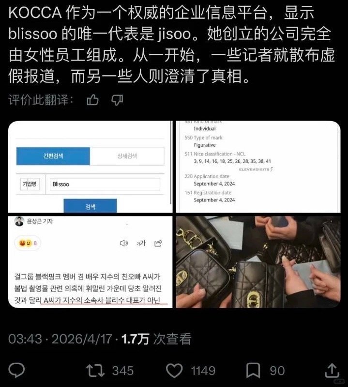Blissoo从始至终创始人只有金智秀一个,每个权威机构都可以查到,并没有自己的家属参与进去