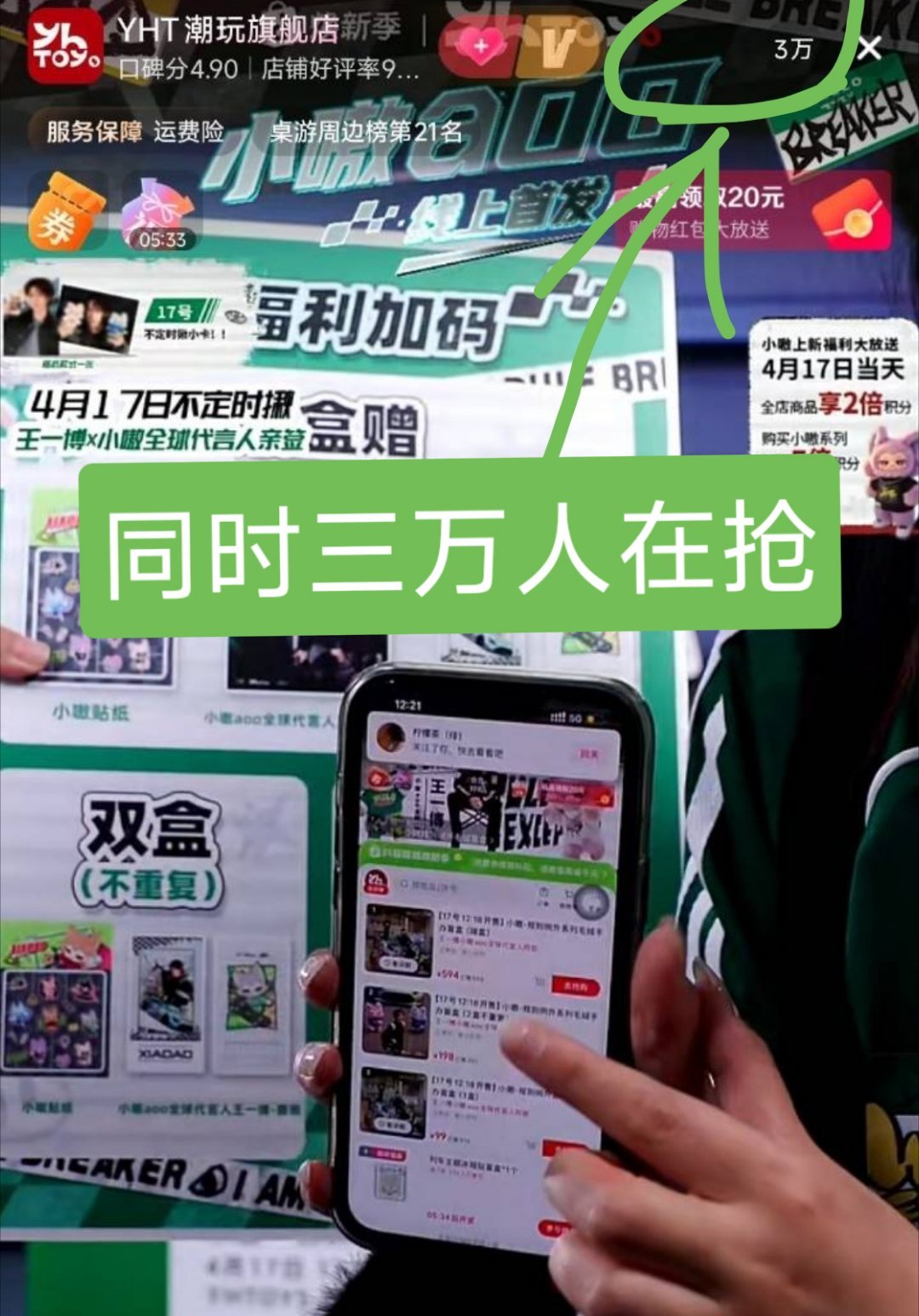 总限量6万,其中一个店同时三万人在抢是什么概念?你们懂不懂王一博这个潮玩秒售罄的含金量💚