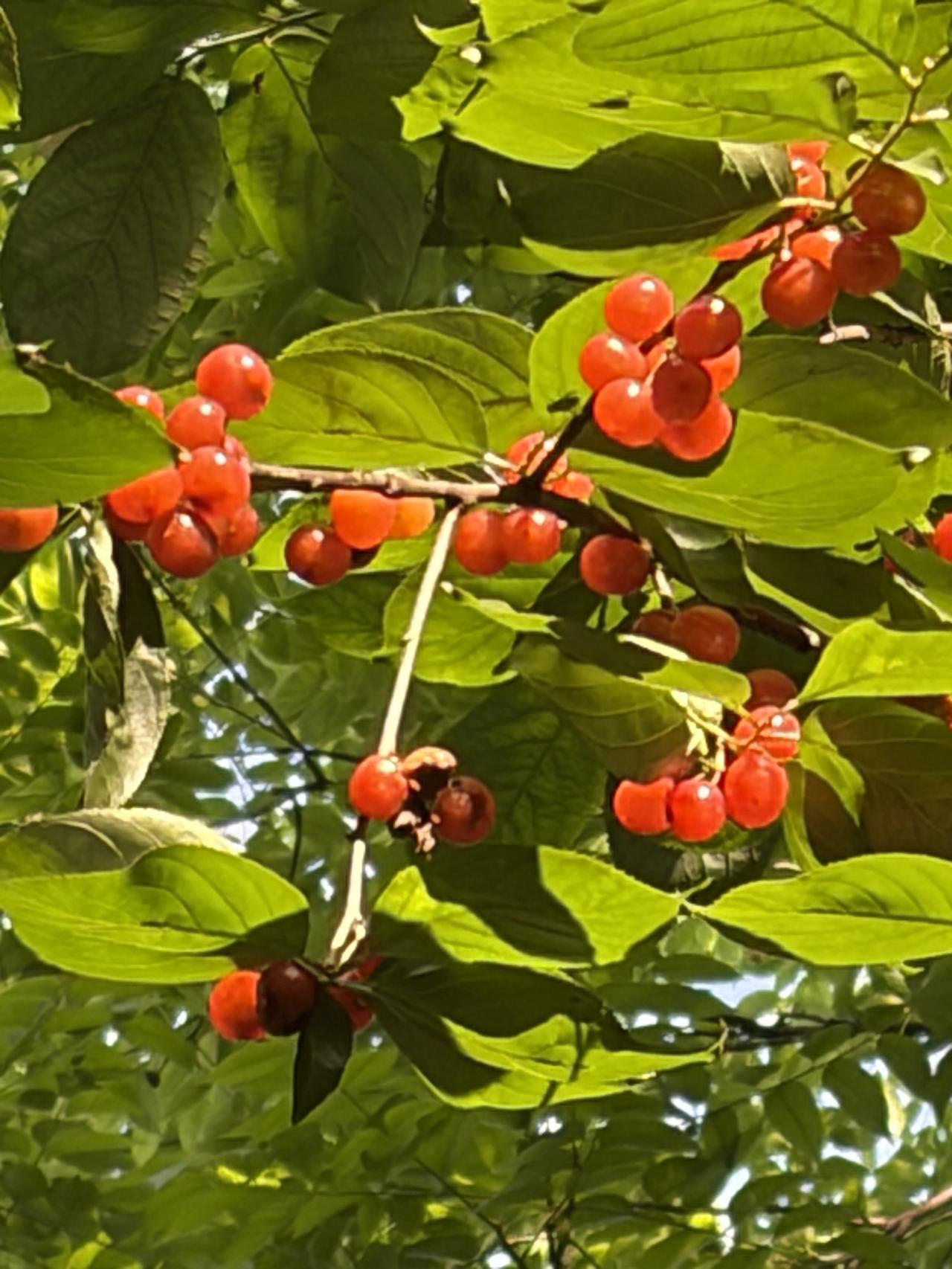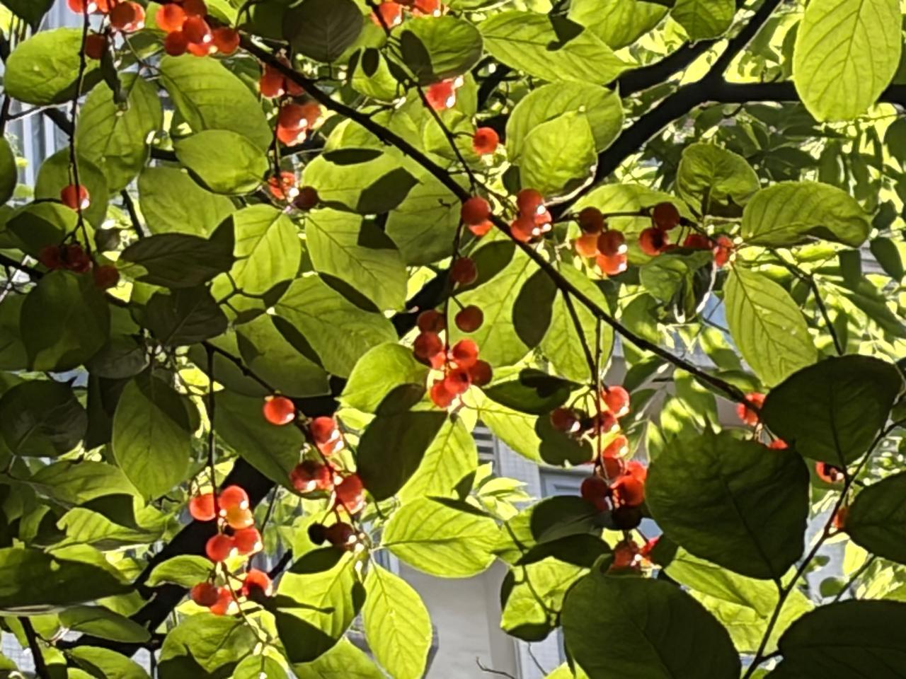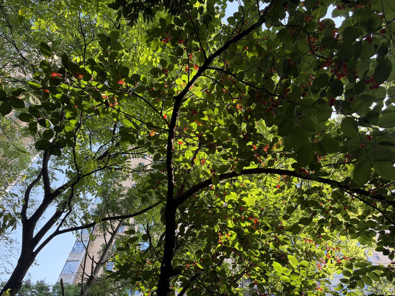 出院回家后第一次下楼散步,晨光从树缝里漏下来,落在身上暖洋洋的。红透的樱桃挂在枝头,滑梯静立在树影里,连风都带着温柔。腿还隐隐作痛,只走了一圈半就停下,可心里却满是欢喜——原来,好好活着,就是最踏实的幸福。
