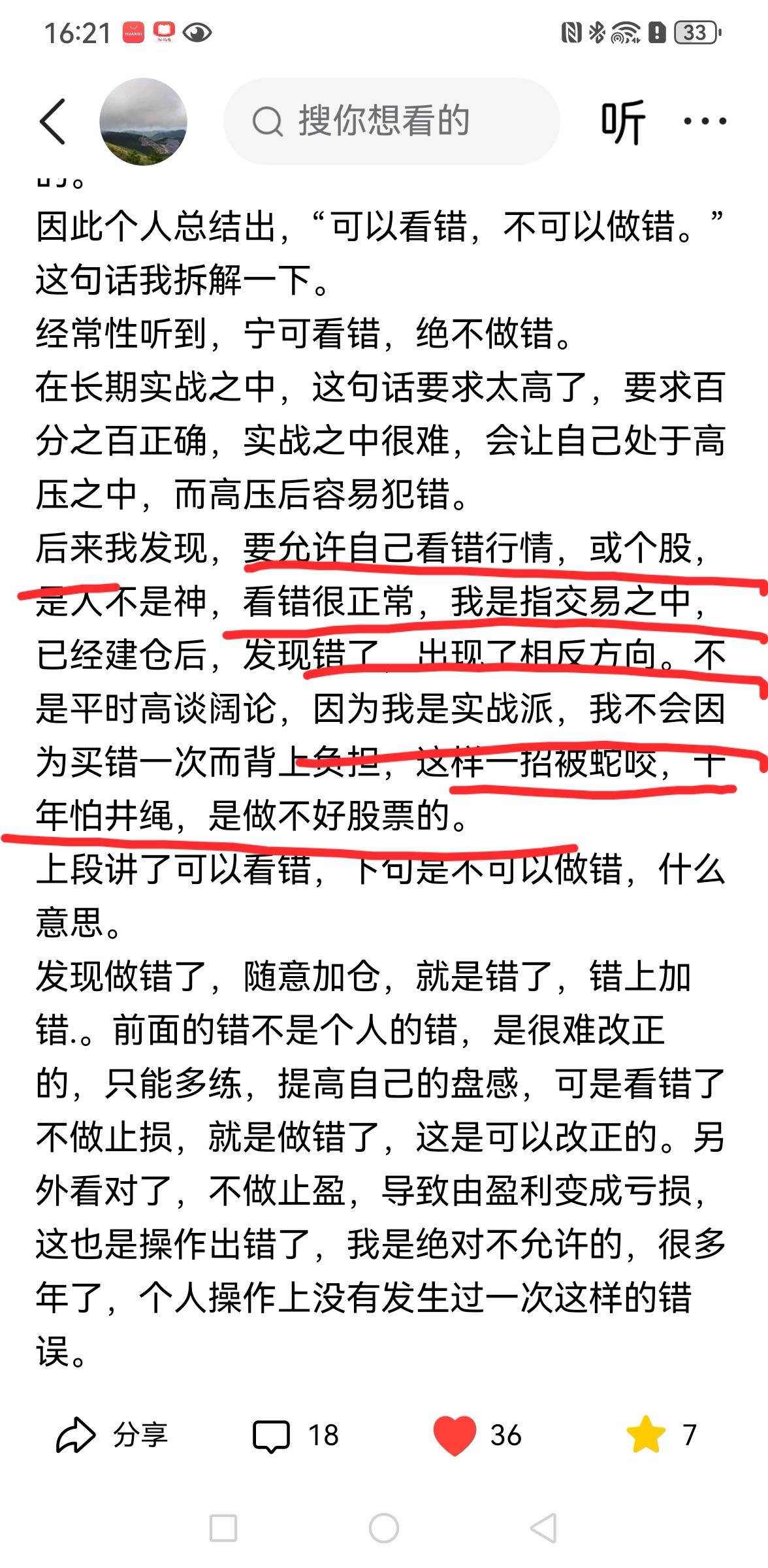 我允许自己犯错,看错行情或个股,但是接下来每一步操作,就不可再错了。