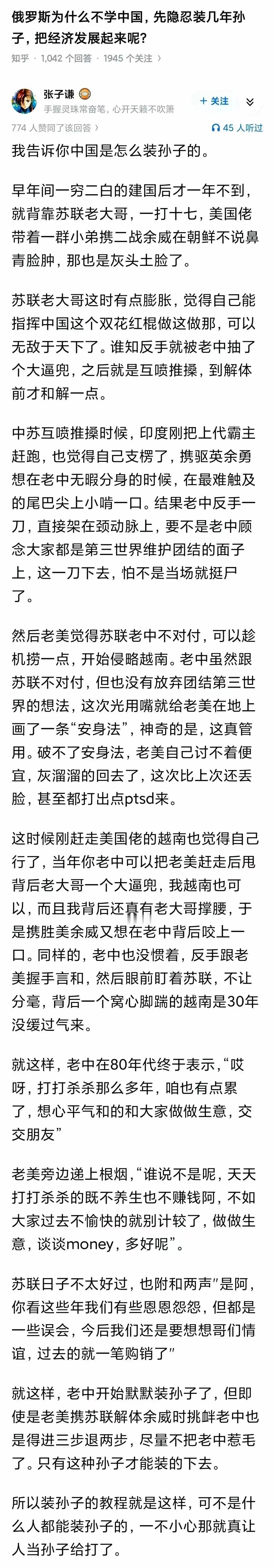 很多人有一个误解,以为是我们低调,埋头发展经济,韬光养晦,不到处惹事,所以才有这三四十年的和平期。