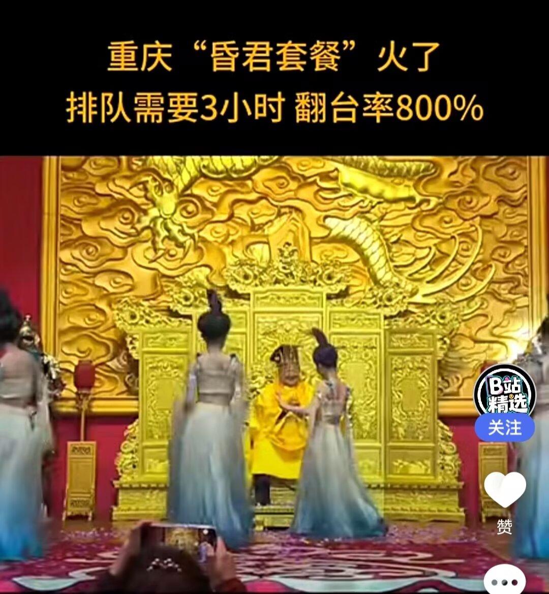 最近重庆餐饮搞了一个渝龙宴从价格表看出每位花300多元可以座皇帝龙椅和宫女互动,男客吃饭都想过一把皇帝瘾排队3小时等待座龙椅。我说你不是皇帝也没有皇帝龙脉有啥意思搞这个!