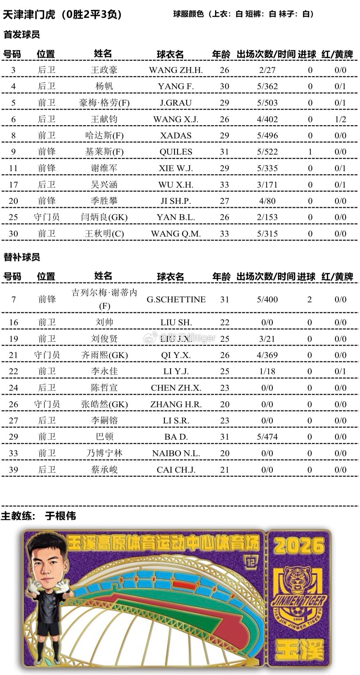 小闫重返首发本场比赛纪念徽章还有少量可售大家可以去俱乐部官方抖🎵相关视频内链接