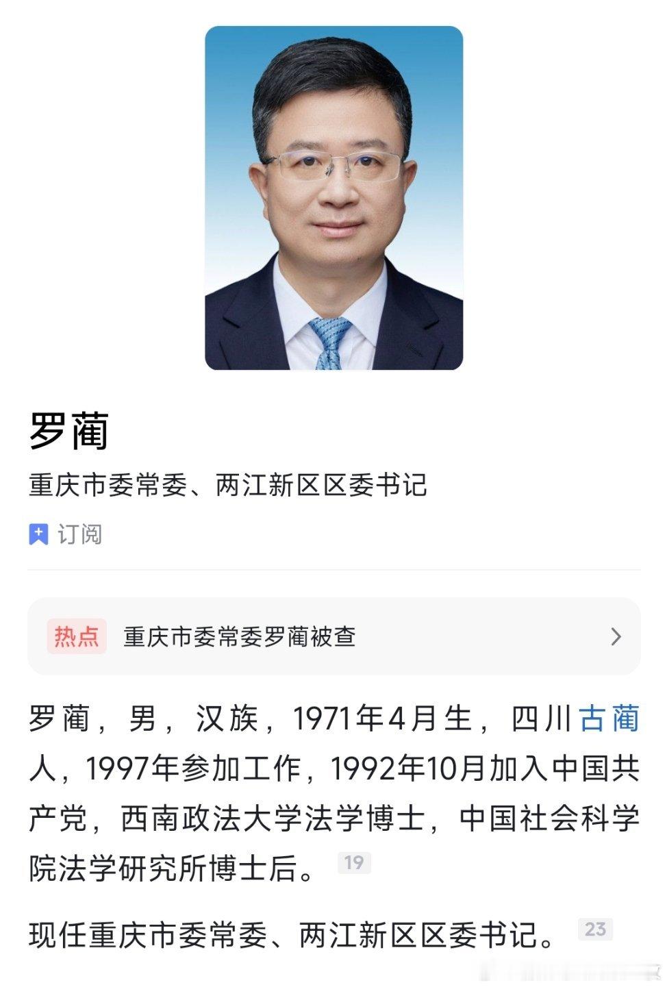罗蔺涉嫌严重违纪违法重庆市委常委、两江新区区委书记罗蔺接受中央纪委国家监委纪律审查和监察调查!