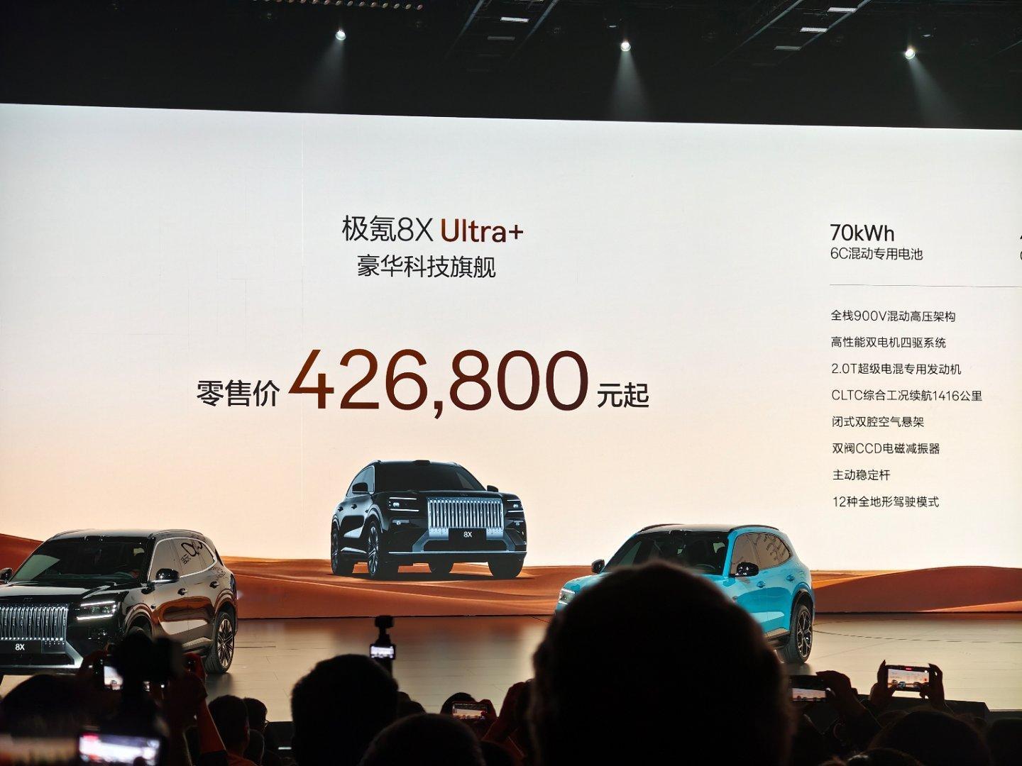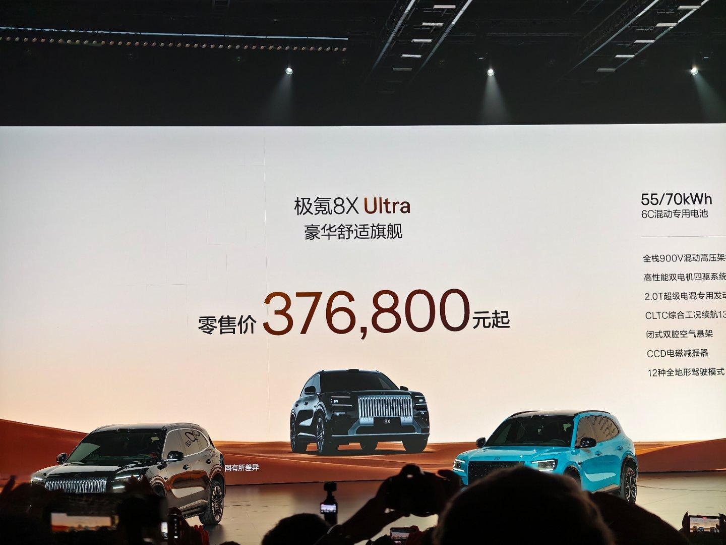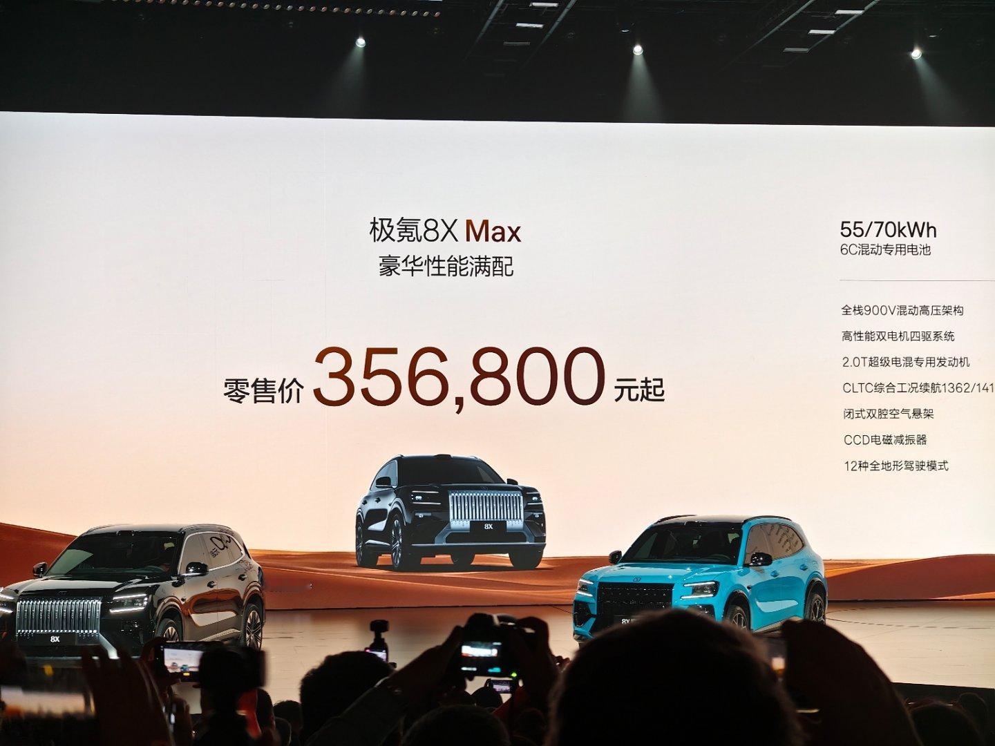 极氪8X 曜影 售价50.08W元起;极氪8X UItra+ 售价42.68W元起;极氪8X UItra 售价37.68W元起;极氪8X Max 售价35.68W元起;