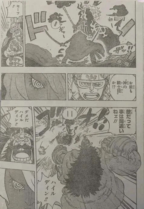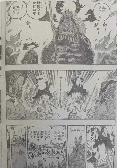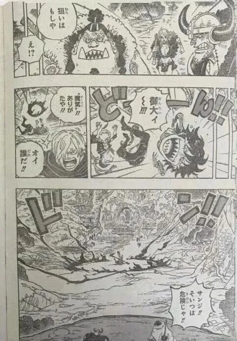 🔸索隆的剑技被伊姆的尾巴挡住。山治遭遇了伊姆的踢技。本话海贼王的双翼看来都遭遇了挫折。
