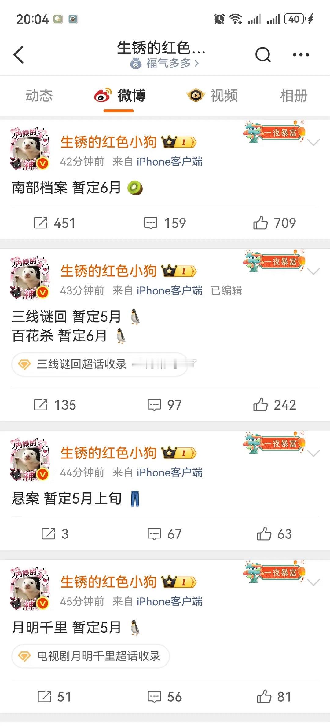 南部档案6月三线谜回5月百花杀6月明月千里5月佳偶天成4.25黑夜告白4.20主
