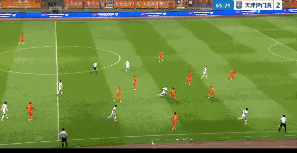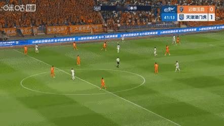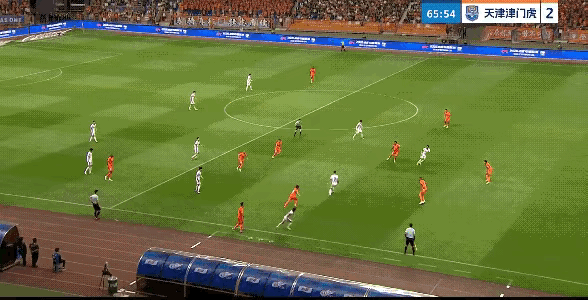 这回看出来了吧,双前锋头球没优势时,不要打中路渗透,不要起高球争顶,就是要打身后,弥补前锋速度不行的问题,这两个前锋的优势就是门前处理球很冷静脚法好